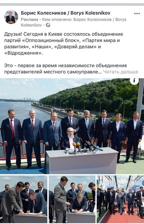 Зокрема, позитивне політичне позиціонування «Опоблоку» здійснювалося, здебільшого, від мені пабліків одного з лідерів партії - Бориса Колесникова (пости про об’єднання «Опозиційного блоку», «Партії миру та розвитку», «Наші», «Довіряй справам», «Відродження»), а також сторінок інформаційного характеру – «ONews.ua» (повідомлення про проведення форуму опозиційних сил) і ZiNews (мотиватори «Костянтинівський район за Бориса Колеснікова» тощо).