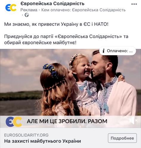 Також, велику активність у цьому сегменті ринку політичної реклами, як і під час президентських виборів, проявив Петро Порошенко та очолювана ним політична сила «Європейська солідарність» (заклики приєднуватися до лав партії, пости, присвячені Дню батька тощо).