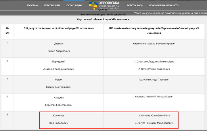 Також до переліку довірених осіб кандидатом було включено і директора його благодійного фонду Генадія Лагуту, який не тільки керує справами фонду, що активно діяв здебільшого на території 184-го округу, але і є помічником-консультантом Ігоря Колихаєва як депутата обласної ради.