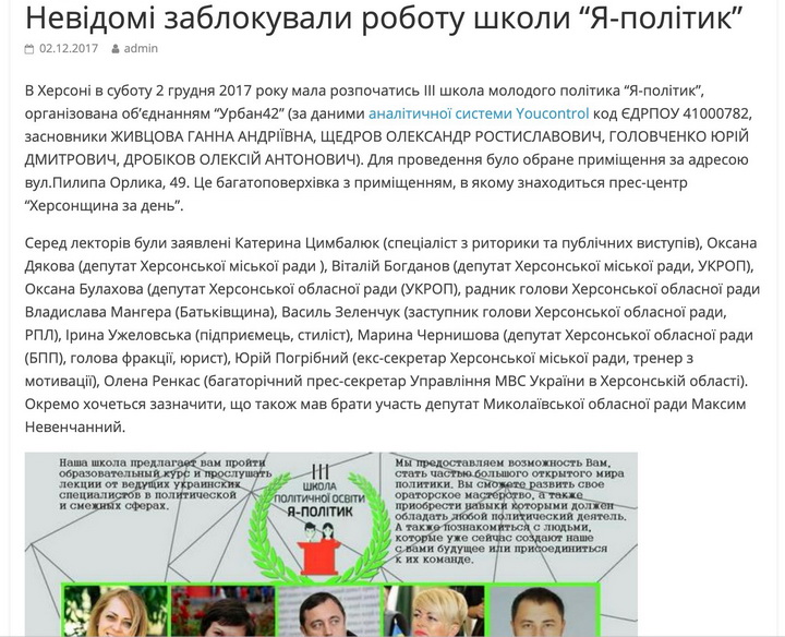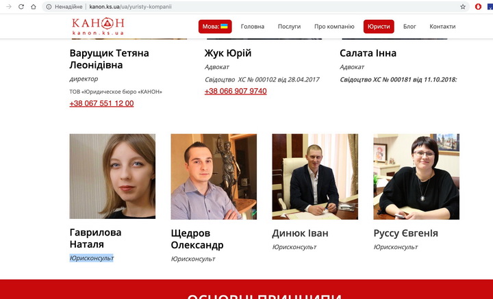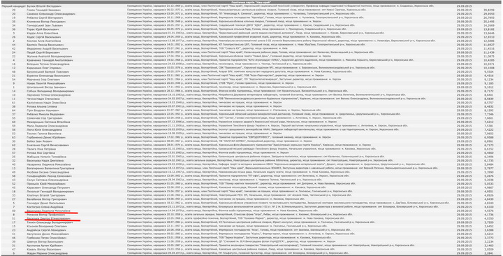 Двоє інших довірених осіб пов’язані з відомою у місті Херсоні юридичною фірмою «КАНОГН» - Наталя Гаврилова і Олександр Щедров значаться на посадах юрисконсультантів цієї фірми. Хоча на сайті ЦВК Олександр Щедров зазначив своїм місцем роботи херсонський порт – ДП ХМТП. Окрім роботи в юридичній сфері, він значиться як засновник організації УРБАН42 –школи політичної освіти, до участі у якій був запрошений достатньо одіозний політик Максим Невенчаний. У результаті захід завершився зіштовхуванням з ультраправими організаціями.