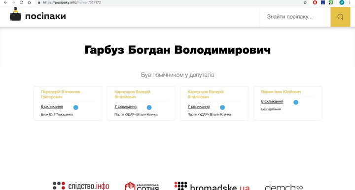 Богдан Гарбуз має найбільше досвіду роботи з парламентарями з усіх зареєстрованих осіб – він почав працювати помічником народного депутата ще у Верховній раді 6 скликання (В’ячеслава Пєрєдєрія від «Батьківщини»), потім перейшов до Валерія Карпунцова (партія «Удар»), а у парламенті 8 скликання пішов помічником до вже обраного Івана Вінника.