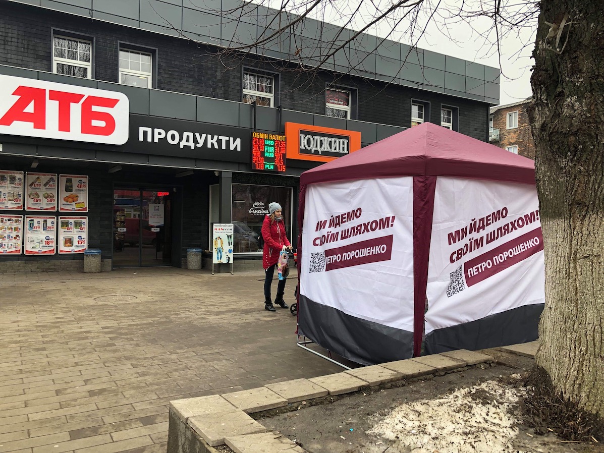 Збір персональних даних у наметах на користь чинного Президента і, водночас, кандидата у Президенти Петра Порошенка виявили представники ОПОРИ 15 лютого. Зокрема, у кількох наметах, встановлених в різних локаціях міст Луцька та Нововолинська, активісти проводили опитування громадян, чи є вони прихильниками Петра Порошенка. В разі ствердної відповіді потенційним виборцям пропонували повідомити: «Яку інформацію про Петра Порошенка та діяльність на його підтримку ви хотіли би отримувати (оберіть усі бажані варіанти)». З-поміж варіантів були зазначені такі: «Я хочу отримувати інформацію про нові ініціативи Петра Порошенка», «Я хочу отримувати інформацію про зустрічі з Президентом та лідерами його політичної команди», «На волонтерських засадах я можу поширити агітаційні матеріали серед своїх друзів та знайомих», «Я хочу бути спостерігачем чи членом дільничної виборчої комісії на виборах Президента (виключно на волонтерських засадах)», «Інше (прохання вписати)».