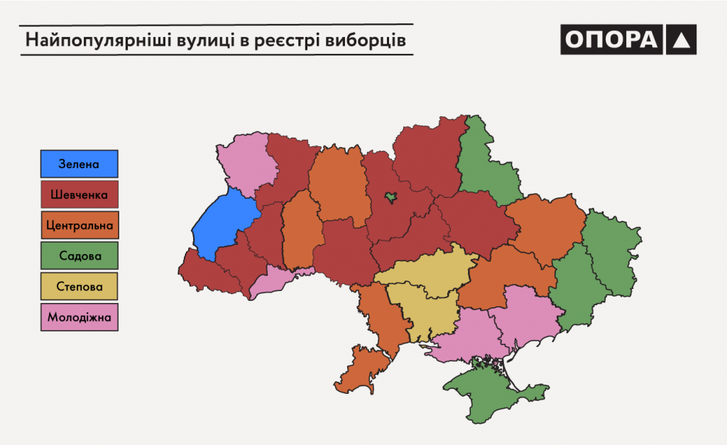А ось у Львівській області найпопулярніша вулиця Зелена.