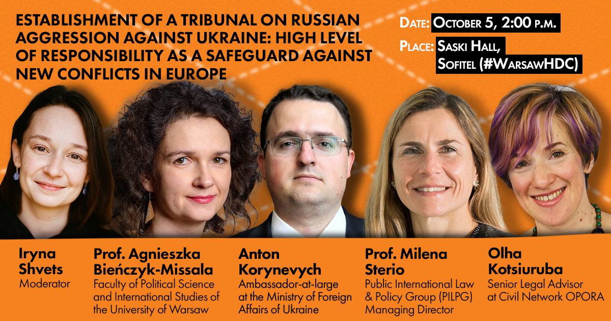 The global security system that prevailed in Europe after the Second World War and was destroyed by Russia's military aggression against Ukraine is facing new global challenges. And the international condemnation of war crimes and the inevitability of punishment for them is one of the critical elements on which the structure of world security will have to be rebuilt. Сivil Network OPORA invites the conference participants to discuss the format of the Special Tribunal for the Crime of Aggression against Ukraine.