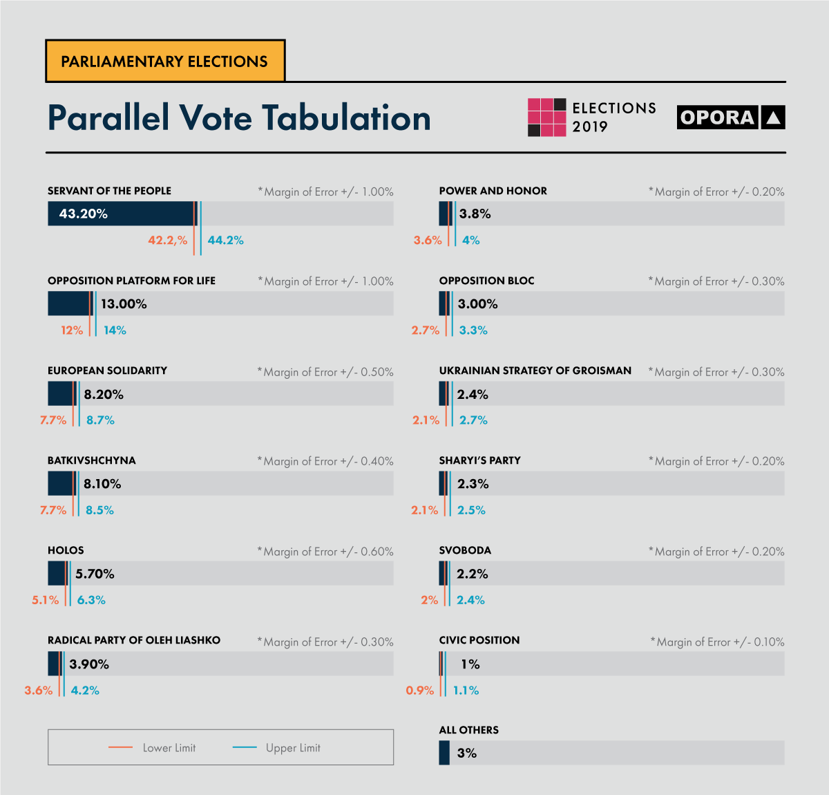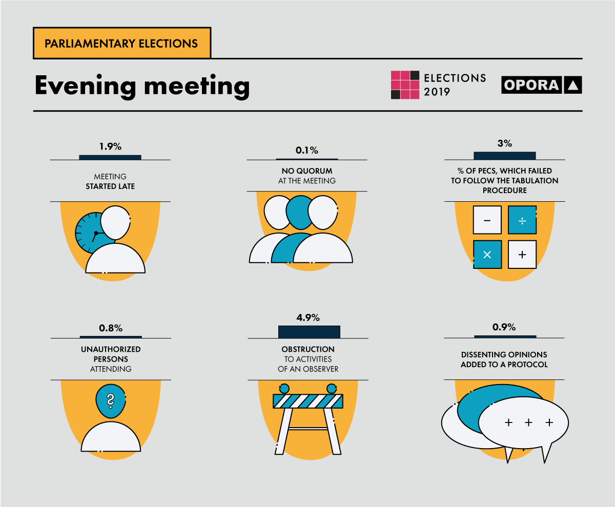 OPORA deployed 1398 trained and accredited PVT Observers to a nationally representative, random sample of polling stations. PVT Observers evaluated the quality of the Election Day process and recorded the official results. The PVT is a nonpartisan exercise conducted solely by OPORA with the intent of providing independent information on the integrity of the process and the veracity of the official results. Unlike exit polls, PVTs do not ask citizens how they voted, rather they rely on trained observers collecting data at polling stations.