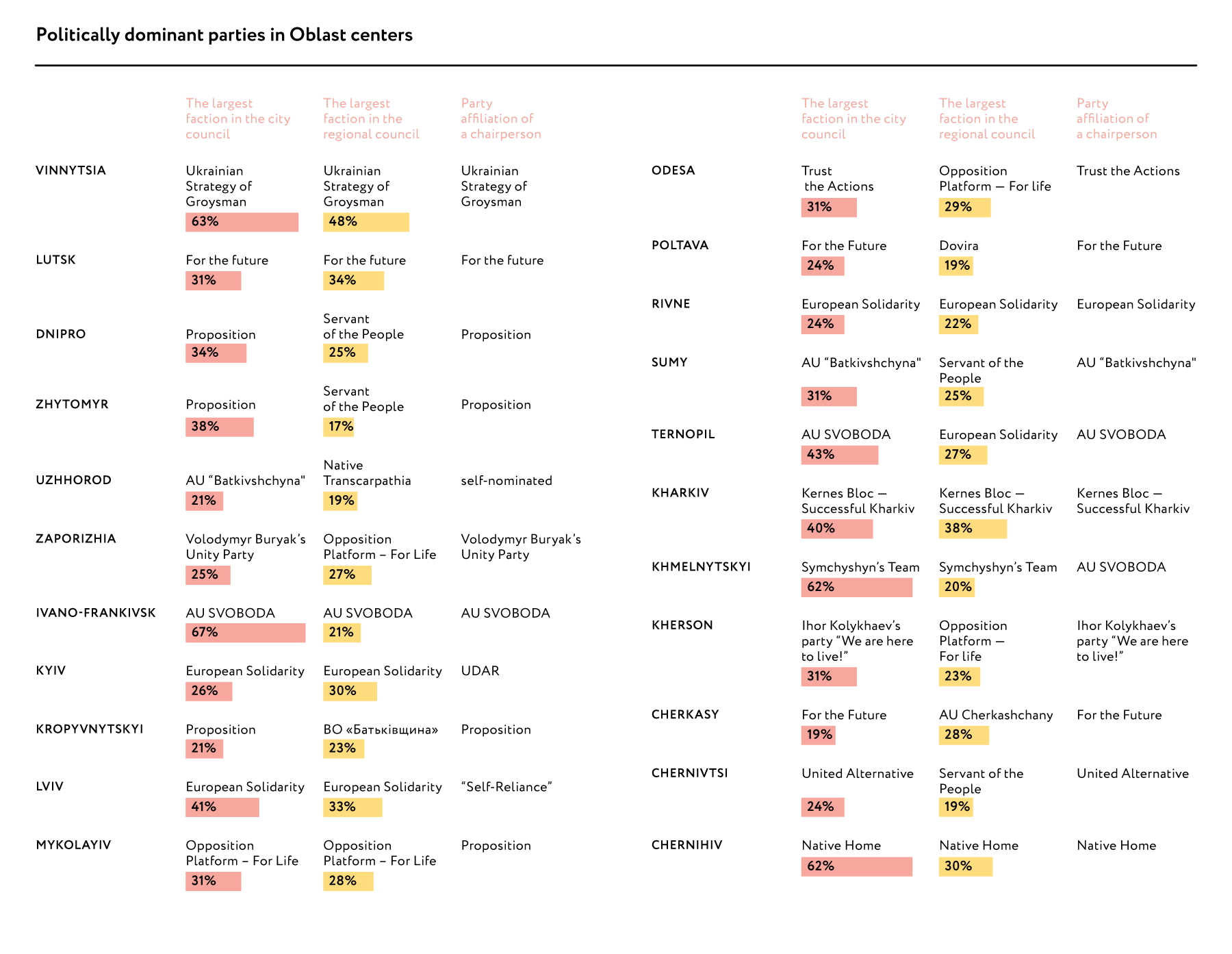 - A proportional electoral system with voting for open lists of local chapters of political parties was used in elections of deputies of oblast, rayon, and city district councils, as well as in elections of deputies of village, township, and city councils (in communities with 10,000 voters or above).