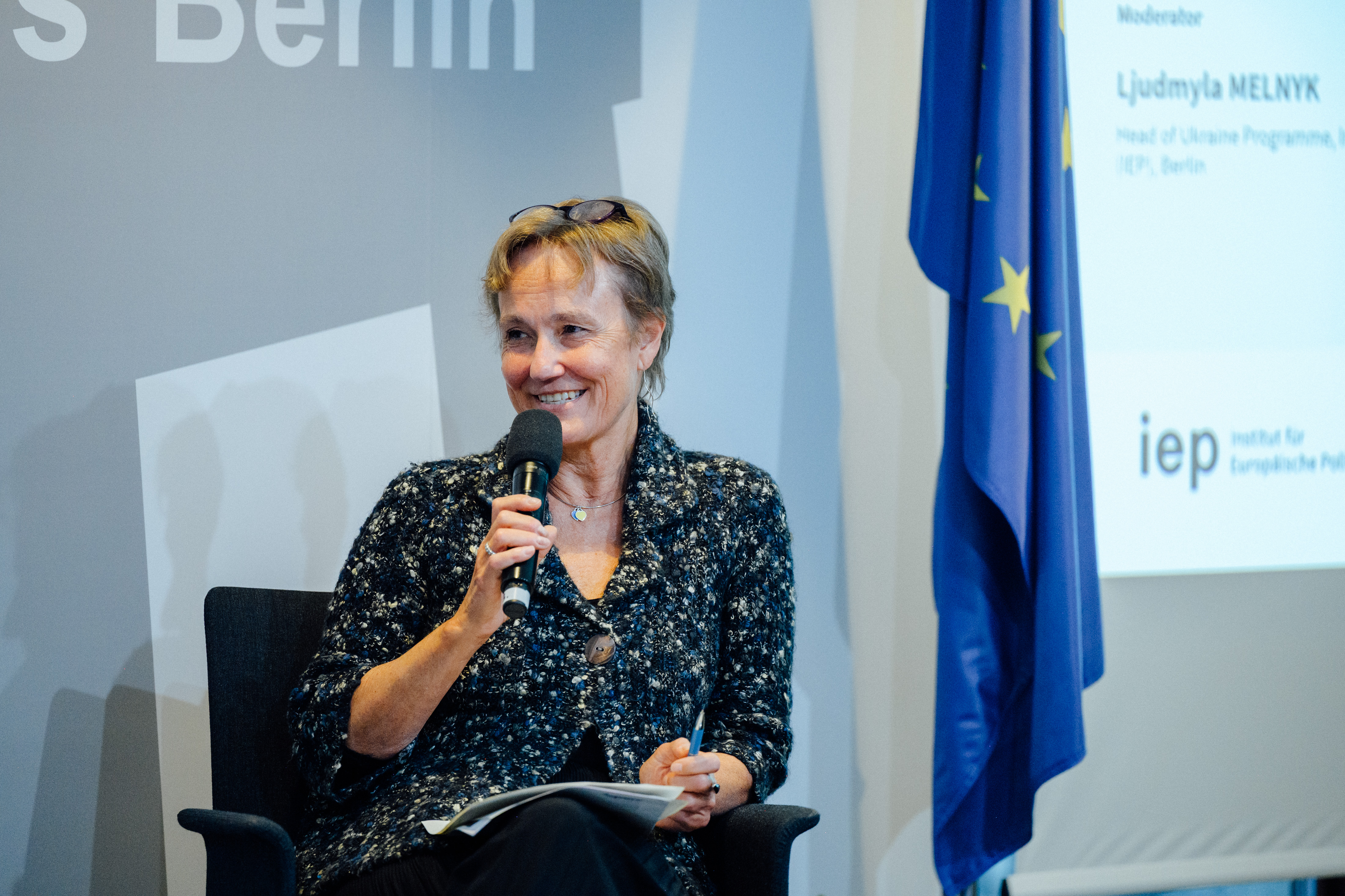 Людмила Мельник, керівниця Української програми Інституту європейської політики, зазначила, що європейська інтеграція України відбувається за обставин, яких не мали жодні інші країни-кандидати, — в умовах російської агресії. Цей факт надає процесу євроінтеграції додаткового виміру.