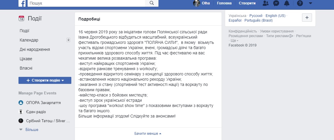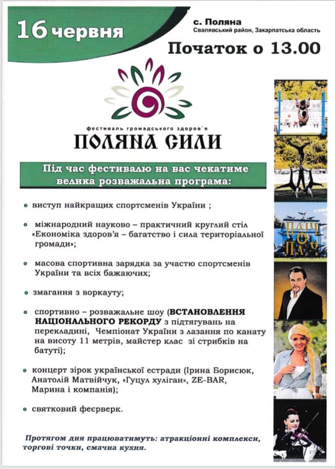 16 червня в селі Поляна Свалявського району пройшов фестиваль здорового способу життя «Поляна сили», який офіційно не позиціонувався як політичний. Зокрема, у анонсі заходу, який був розміщений у Фейсбуку на сторінці «Поляна сили» йшлося, що подію організовують за ініціативи голови Полянської сільської ради Івана Дрогобецького. У програмі заходу анонсували виступи найкращих спортсменів України, масову спортивну зарядку, змагання з воркауту, концерт зірок української естради та святковий феєрверк.