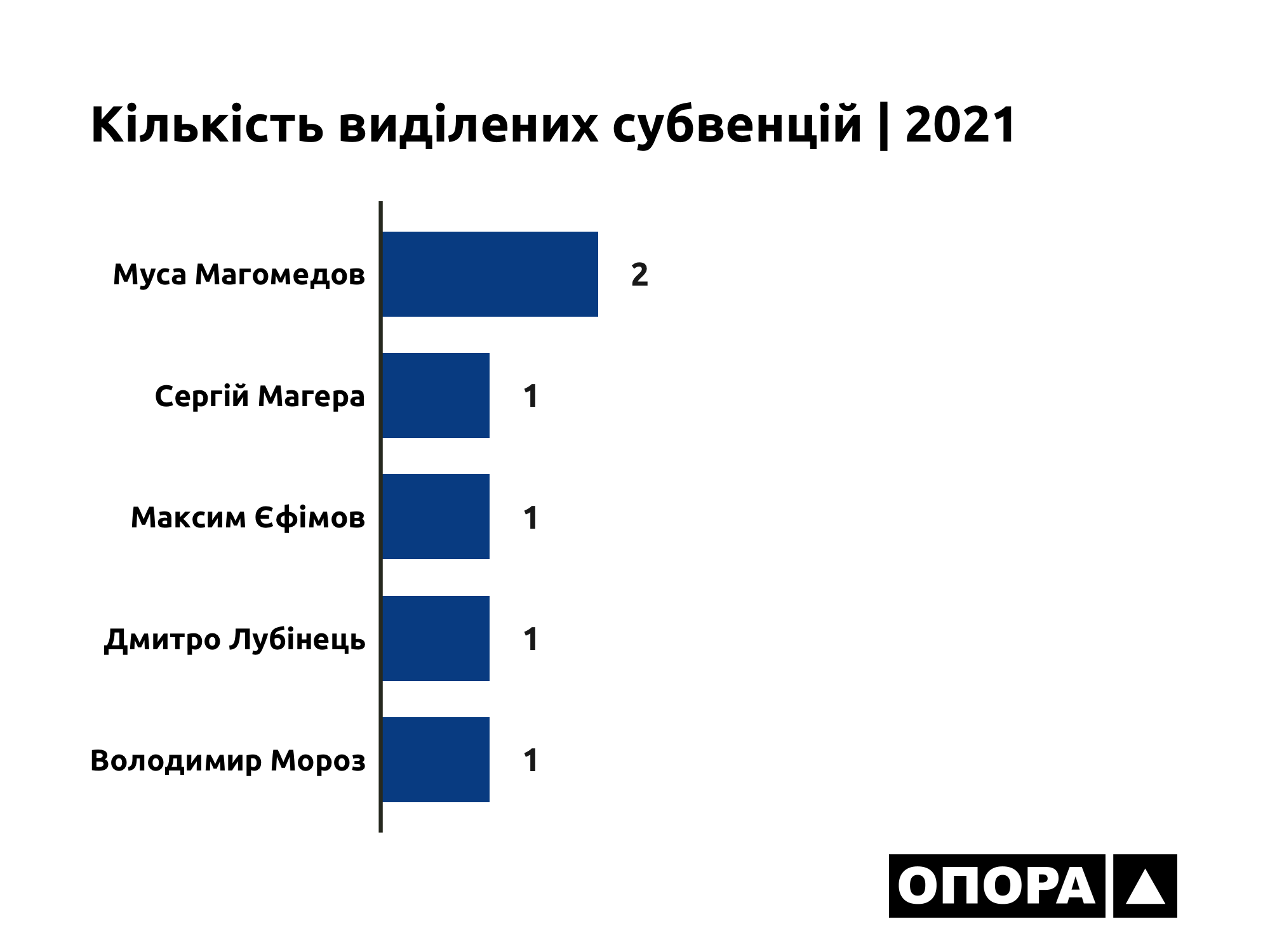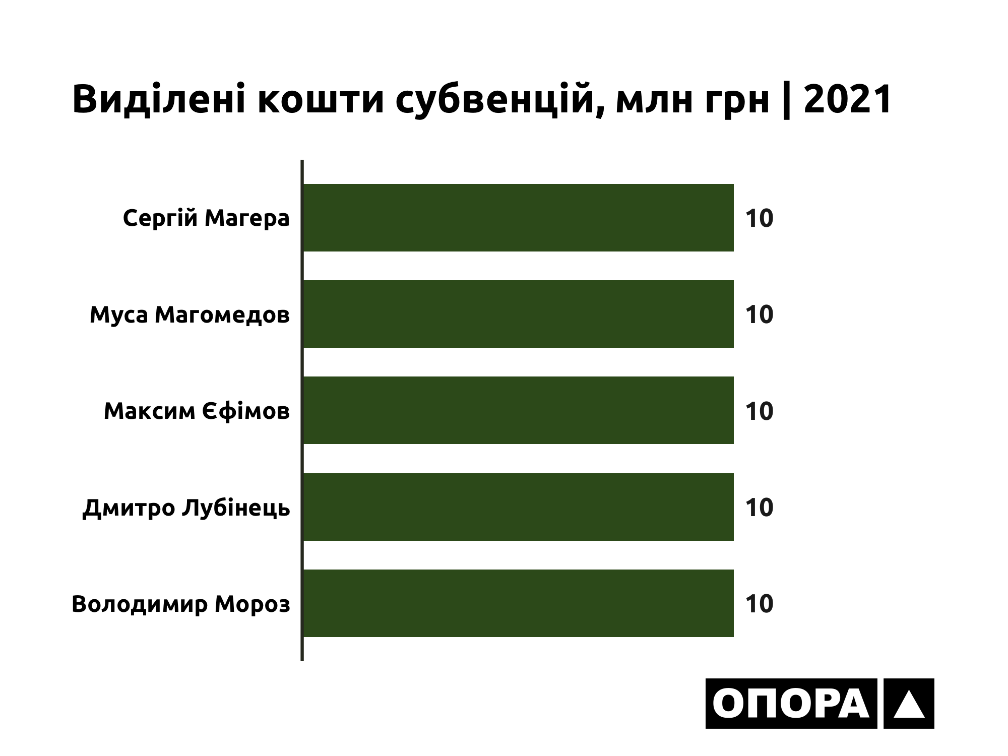 В межах області кошти державної субвенції розподіляються також нерівномірно. І це пов’язано не з оцінкою найбільш гострих потреб в регіоні. Фактично це залежить від того, хто з нардепів зміг «вибити» кошти. Адже депутати мають певний вплив на розподіл субвенцій на соціально-економічний розвиток. Цього року кошти виділені в округи, де обрані Максим Єфімов, Сергій Магера, Муса Магомедов, Дмитро Лубінець та Володимир Мороз.