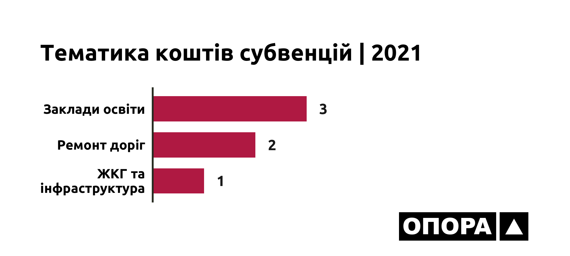ОПОРА дослідила, які саме проєкти пролобіювали народні депутати. З них 3 стосуються ремонту закладів освіти, 2 пов’язані зі сферою ремонту доріг та ще 1 – це інфраструктурний проєкт.