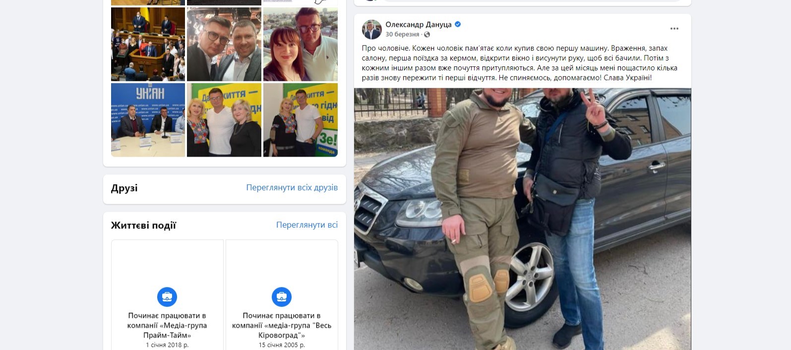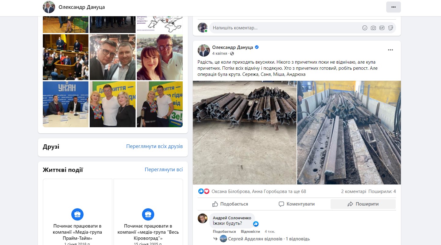 Народний депутат Олександр Дануца придбав холодильник для громадської організації і метал для протитанкових їжаків, а також сприяв доставці вантажу й закупівлі квадрокоптера. Також політик написав у Facebook про купівлю кількох автомобілів для військових.
