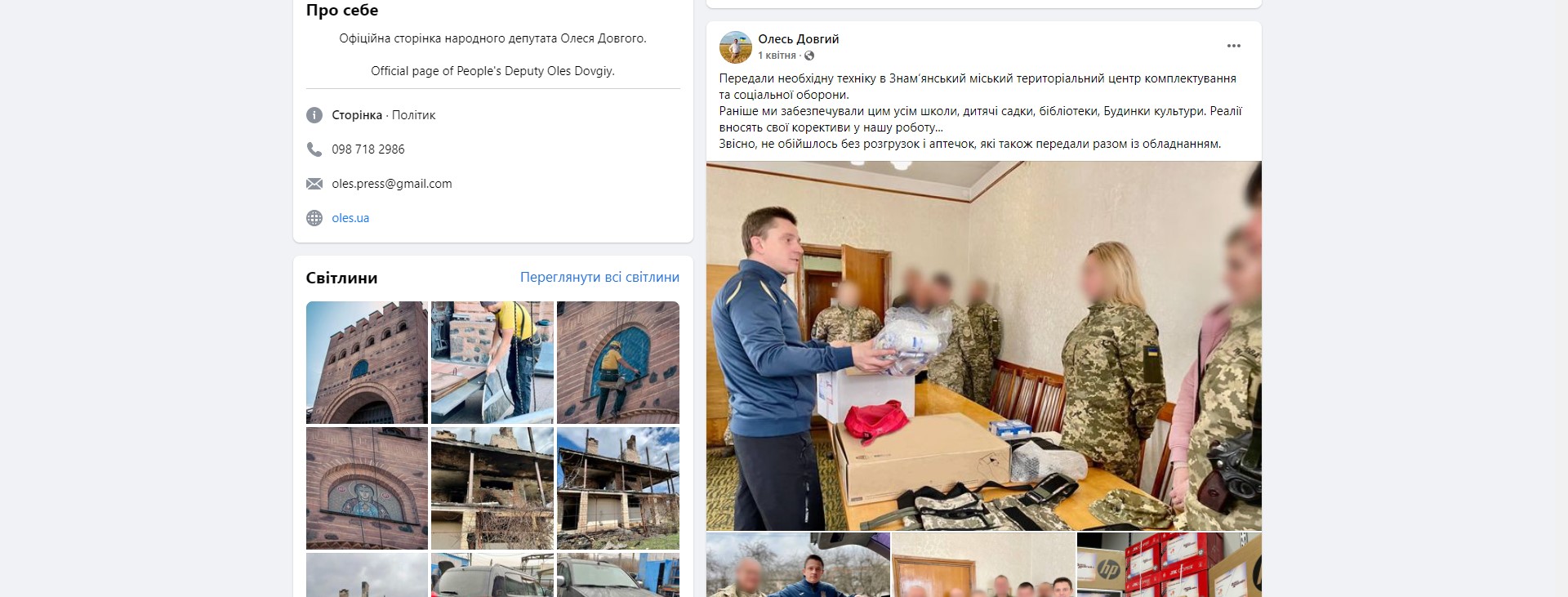Іншим важливим напрямком діяльності нардепів стала координація надання населенню гуманітарної допомоги. Наприклад, Олесь Довгий у соцмережах активно повідомляє про допомогу військовим, переселенцям, медикам, а також про створення споруд для захисту пам’яток Києва. Політик написав, що у лютому-квітні за його сприяння Збройним Силам України передали позашляховик, ліки й аптечки, а родинам вимушених переселенців подарували понад 2000 портфелів. Олесь Довгий разом із однодумцями відправляли гуманітарні вантажі в Запоріжжя, Харків та Чернігів.