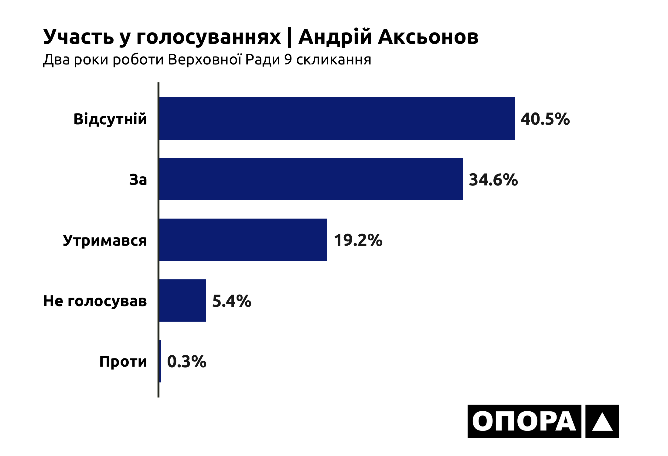 Обраний весною 2021 року позафракційний Андрій Аксьонов вже встиг пропустити майже половину засідань за ці півроку – він був відсутній під час 617 (40,5%) голосувань. Ще 528 (34,6%) разів проголосував схвально, у 293 (19,2%) випадках утримався, 82 (5,4%) рази не голосував і при 5 (0,3%) голосуваннях був проти.