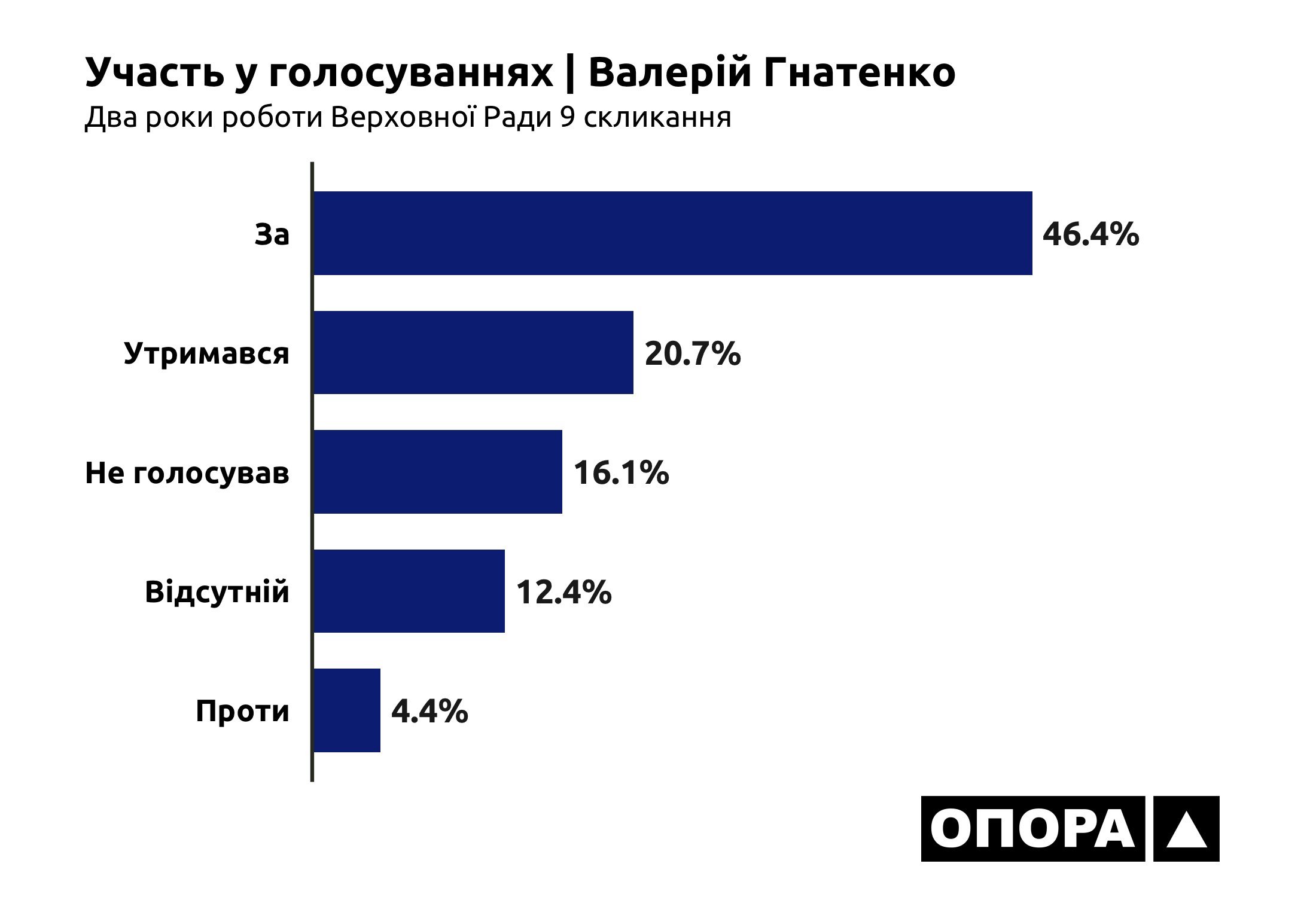 Представник політичної фракції «Опозиційна платформа – За життя» Валерій Гнатенко голосує інакше. В більшості випадків він натискає «за» – 4448 разів або 46,4%. Утримувався від голосувань – 1981 разів (20,7%), не голосував 1546 (16,1%), був проти – 418 раз (4,4%). Взагалі був відсутній під час 1189 голосувань (12,4%).