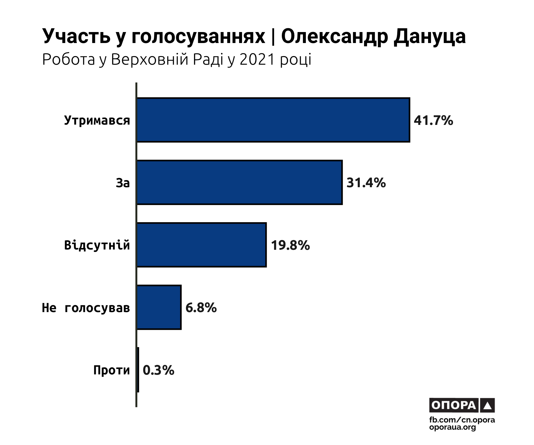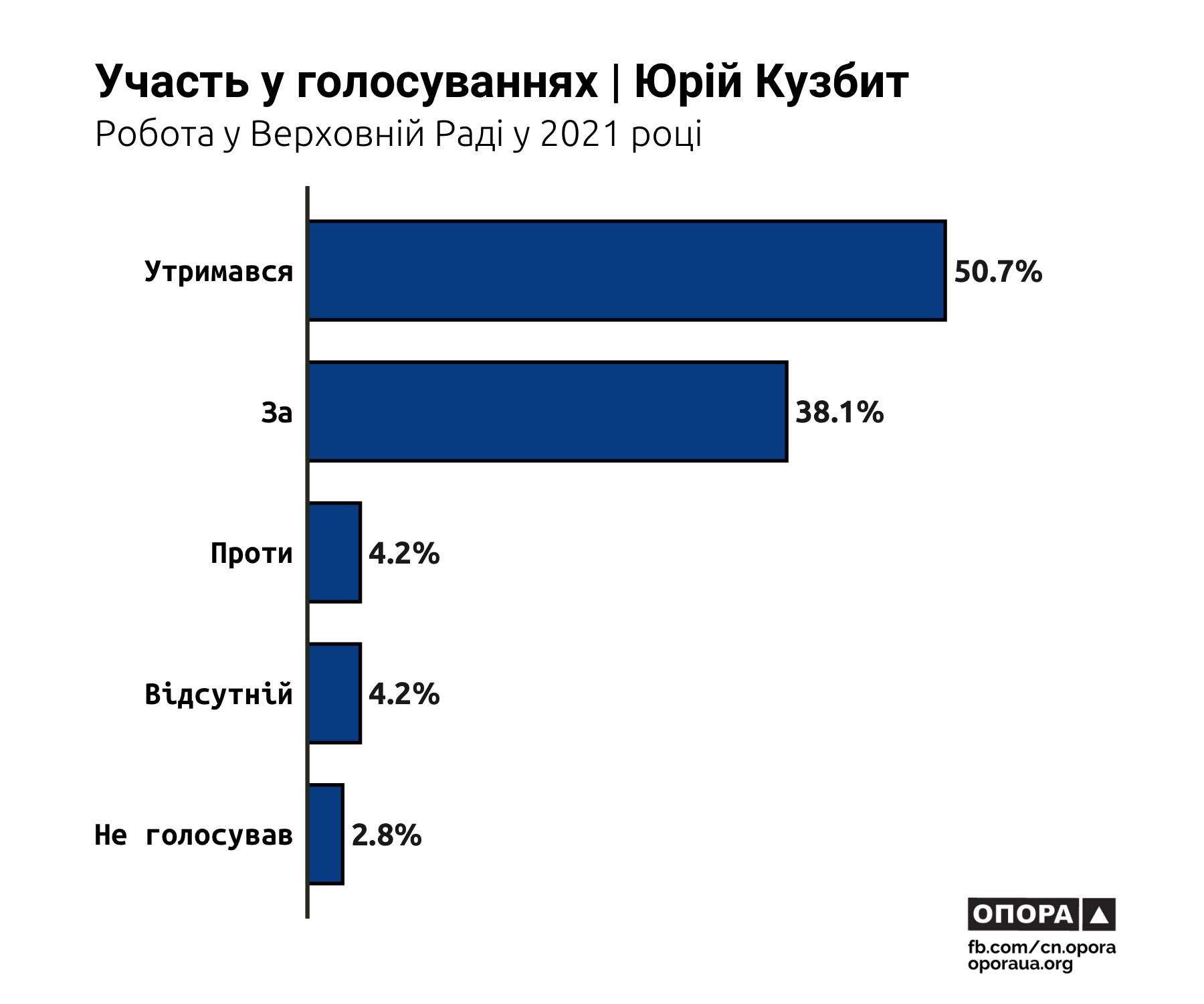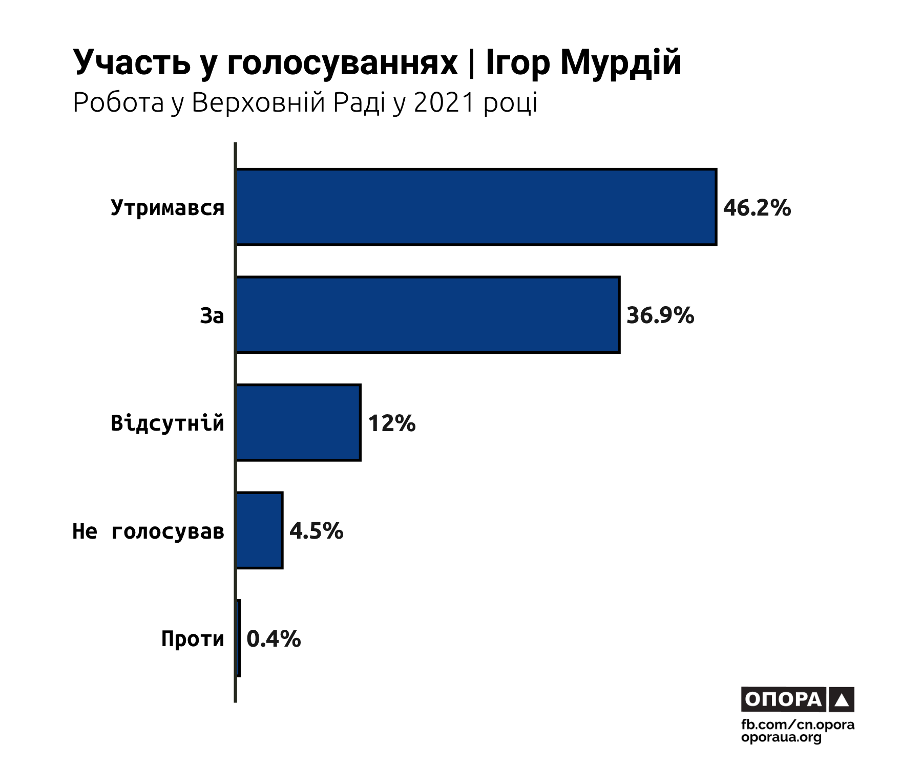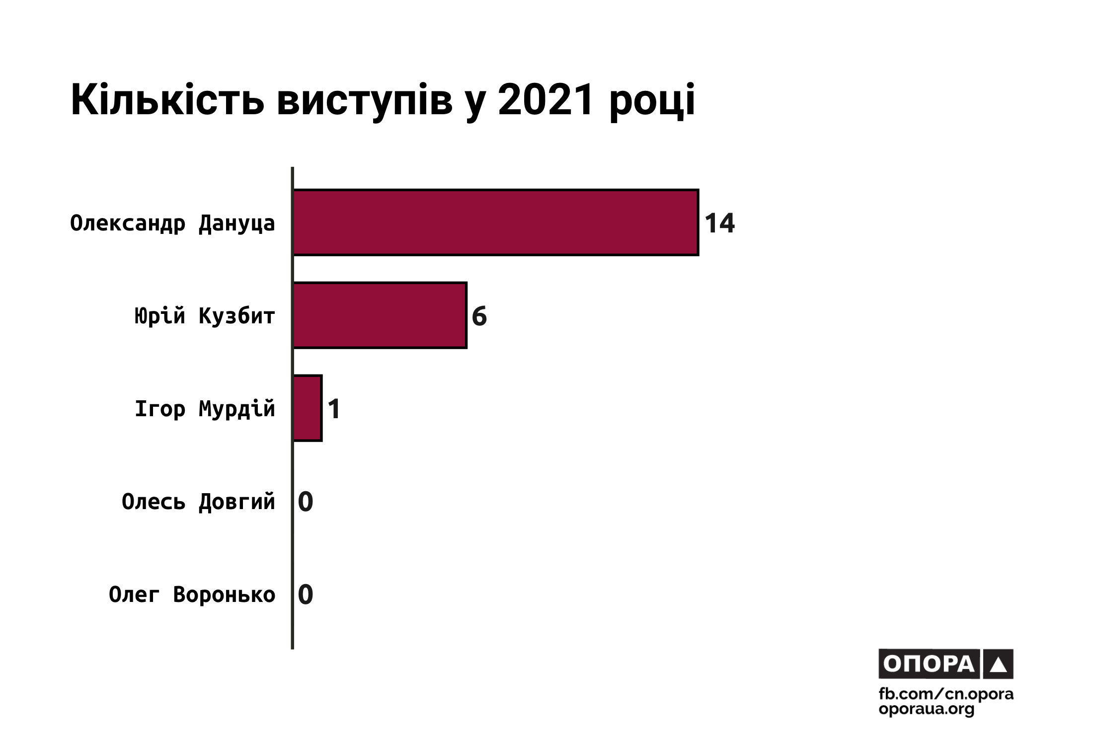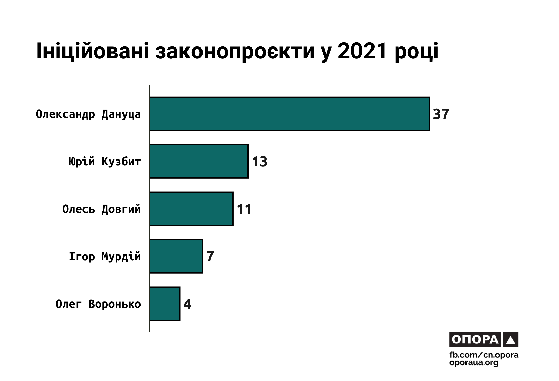 Протягом минулого року парламент ухвалив 15,4% законопроєктів Юрія Кузбита, а також 10,8% законопроєктів Олександра Дануци. Жодні законодавчі зміни, ініційовані Ігорем Мурдієм та Олегом Вороньком, так і не стали законами.