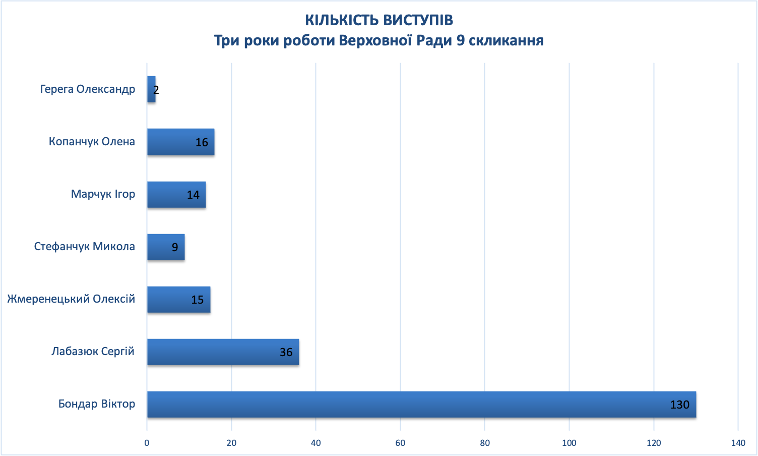За три роки депутат 36 разів виступав у парламенті загальною тривалістю 40 хвилин 14 секунд.