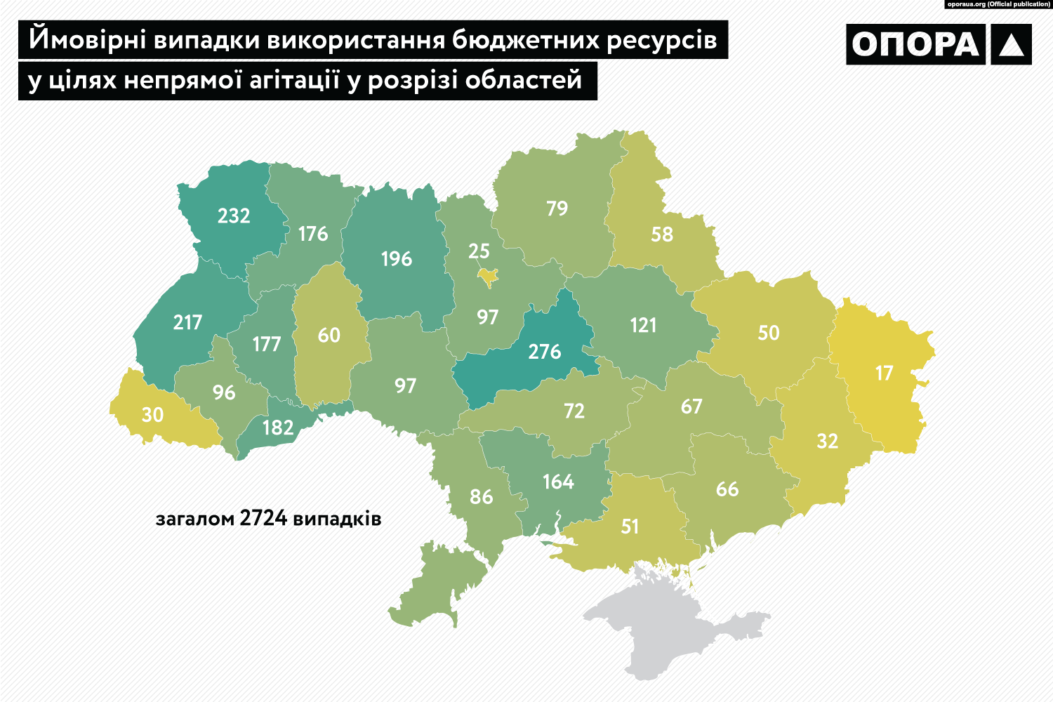 Ще однією важливою проблемою є те, що народні депутати використовували субвенції у цілях передвиборчої агітації, яка є однією з форм бюджетного адміністративного ресурсу. Так, у період з червня 2018 року по липень 2019 року спостерігачі ОПОРИ зафіксували 2 724 випадки піару на бюджетних ресурсах з боку 147 парламентарів, які були обрані в мажоритарних округах, і 27 – за партійними списками.