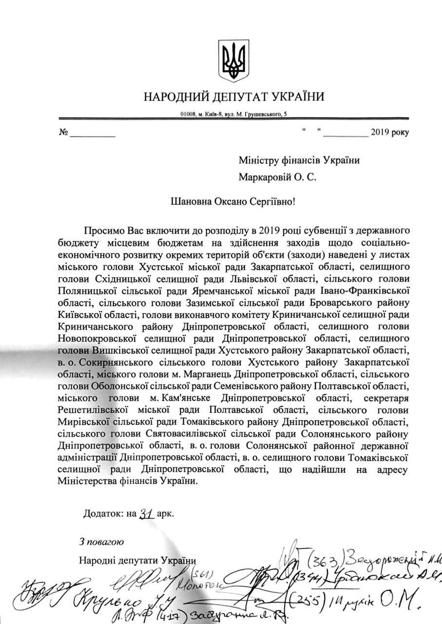 У цей же день у телеграм-каналі шеф-редакторки видання “Левый берег” Соні Кошкіної була оприлюднена таблиця запитів депутатів щодо фінансування своїх округів за рахунок субвенцій соціально-економічного розвитку на наступний бюджетний рік. У списку 67 депутатів. Більшість з них представляють фракцію “Слуга народу”. Загальна сума – трохи більше 2 мільярдів гривень.