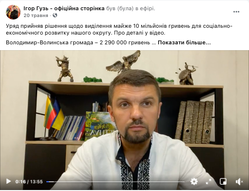 Після публікації розпорядження КМУ про розподіл коштів субвенції, народний депутат Ігор Гузь записав відео, яке розмістив на своїй офіційній сторінці у мережі Facebook, у якому звернувся до виборців свого округу з інформативним повідомленням про виділені кошти. Він розповів, на що саме кошти будуть спрямовані, а також пояснив, чому найбільше заходів буде профінансовано у м. Нововолинськ.