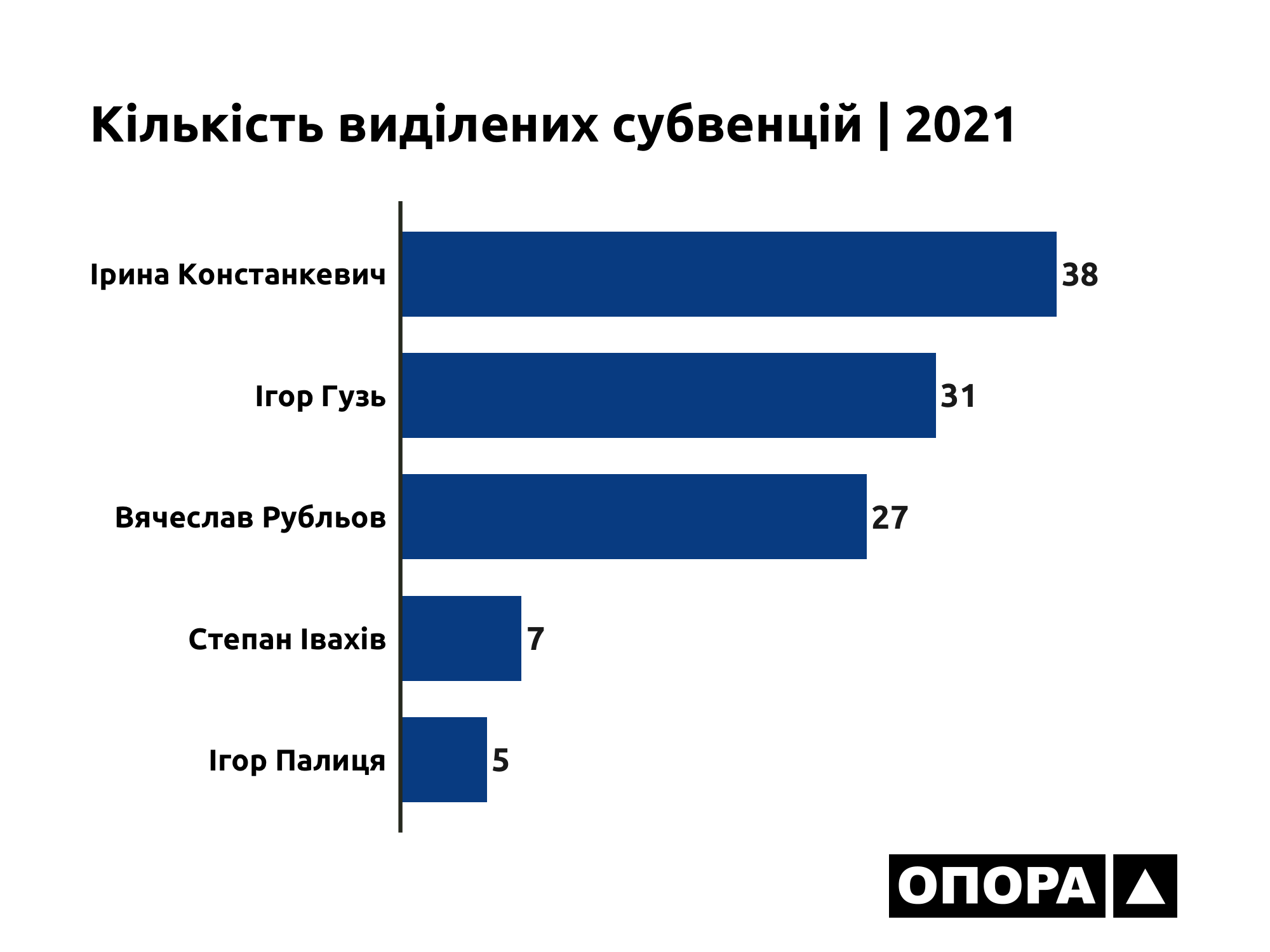 Загалом Кабінет міністрів розподілив більше 1,6 мільярдів гривень на субвенції у 2021 році. Детальніше читайте у матеріалі ОПОРИ: https://www.oporaua.org/report/parliament/23199-iak-kabmin-rozpodiliv-bilshe-1-6-miliardiv-griven-na-subventsiyi