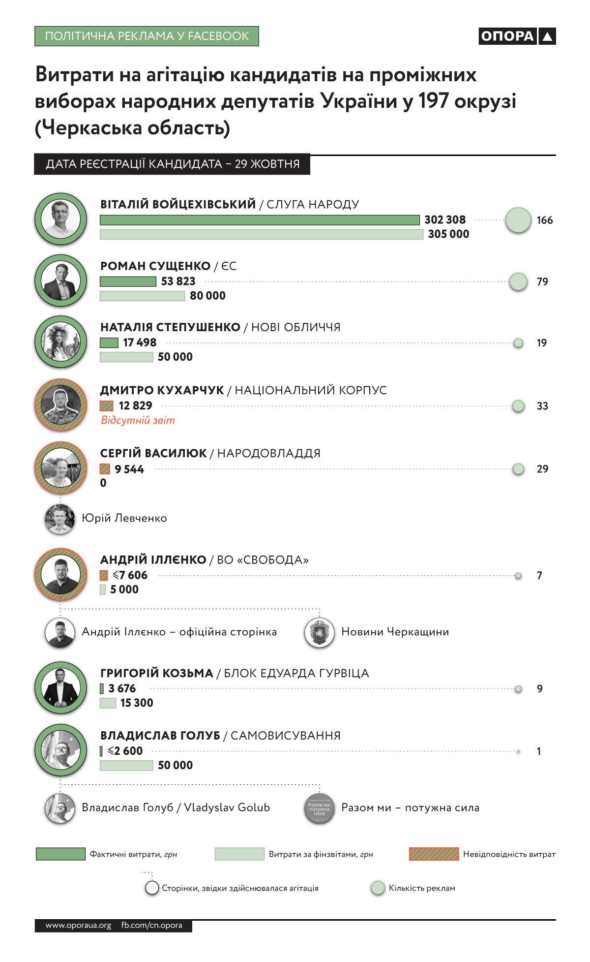 Після порівняння фінансових звітів кандидатів, що були учасниками весняних довиборів у Верховну Раду, за фактами, наданими ОПОРОЮ. уже були відкриті кримінальні провадження щодо подання завідомо неправдивих відомостей у фінансових звітах кандидатів на 87 та 50 виборчих округах. І це за умов, що наразі громадськість може простежити лише “Facebook-витрати”, хоча способів агітувати в інтернеті значно більше. Під час підготовки цього матеріалу ОПОРА враховувала витрати з особистих сторінок кандидатів, партійних сторінок та сторінок третіх осіб з дня реєстрації кандидатів до останнього дня агітації.