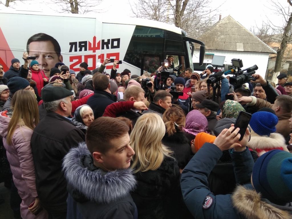 У ході візиту на Хмельниччину 16 лютого Олег Ляшко відвідав місто Деражню та селище Летичів. Виступаючи перед виборцями, кандидат на посаду Президента України розповідав про зміни в країні, яких слід очікувати в разі його перемоги. Зокрема, повідомляють спостерігачі ОПОРИ, які відвідали зустрічі, обіцяв на законодавчому рівні знизити ціни за комунальні послуги, підняти вдвічі пенсії, здешевити газ та впровадити окремі виплати селянам на худобу.