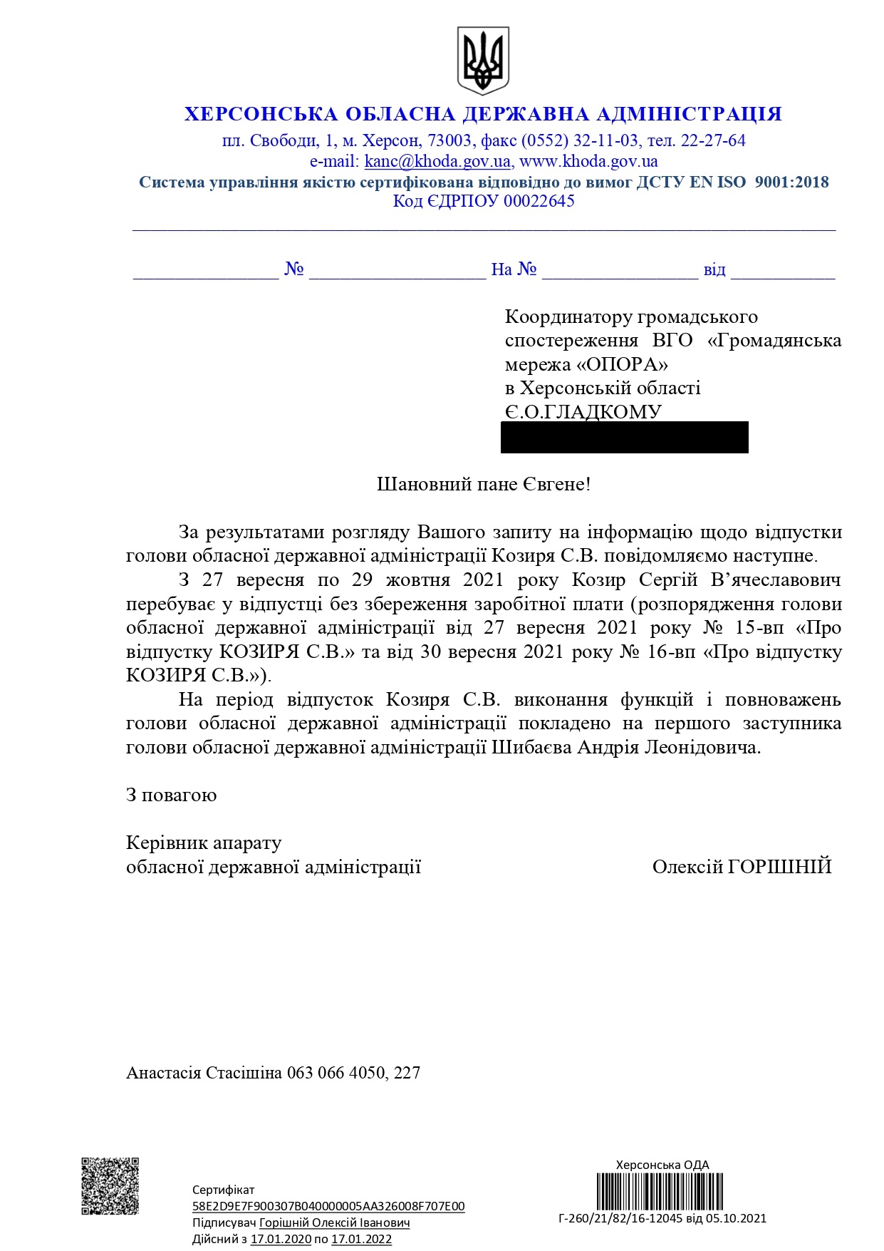 9 жовтня у Палаці культури форум відкрив Сергій Козир, якого представили як голову ОДА. Він також презентував локальну стратегію ефективного розвитку підприємництва та економічного розвитку громад кластерного типу. До слова, відповідно до інформації, яку надали ОПОРІ в Херсонській облдержадміністрації, голова ОДА знаходиться у відпустці з 27 вересня до 29 жовтня.