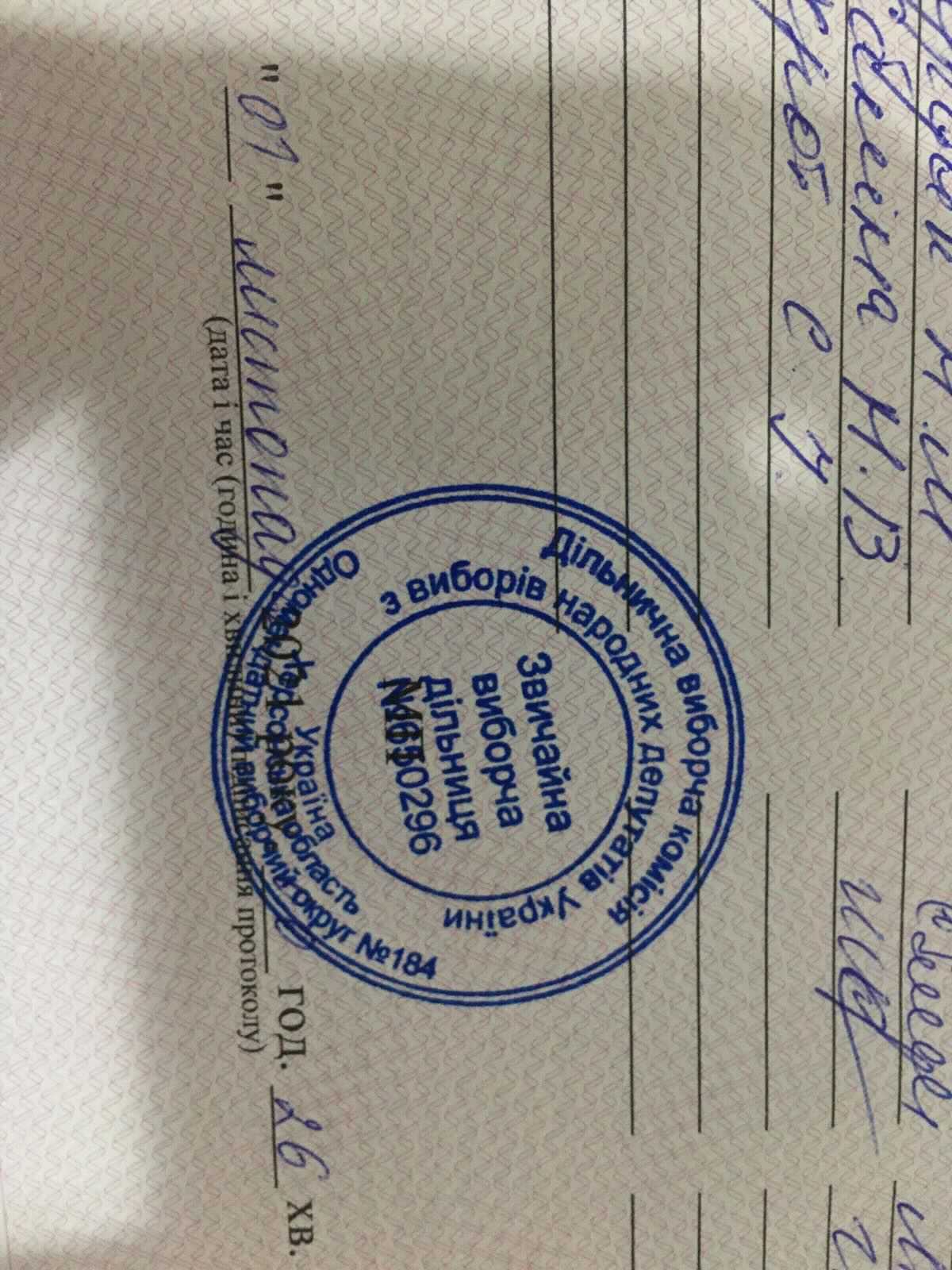 Дільничні виборчі комісії на окрузі №184, які завершили підрахунок голосів, підписують протоколи про підсумки голосування на дільниці, однак вказують не 31 жовтня, а 1 листопада.