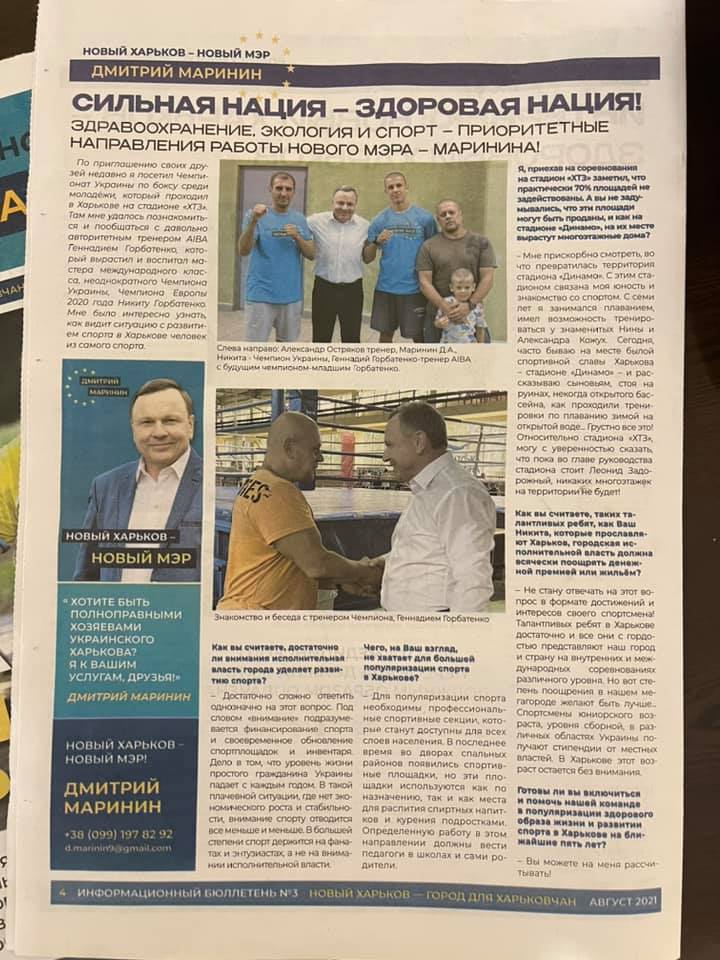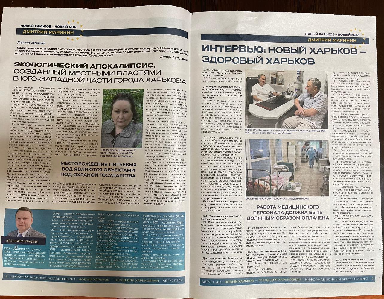 Крім того, у серпні вийшов №3 інформаційного бюлетеня «Новый Харьков – новый мэр. Дмитрий Маринин». Газета присвячена критиці міської влади.