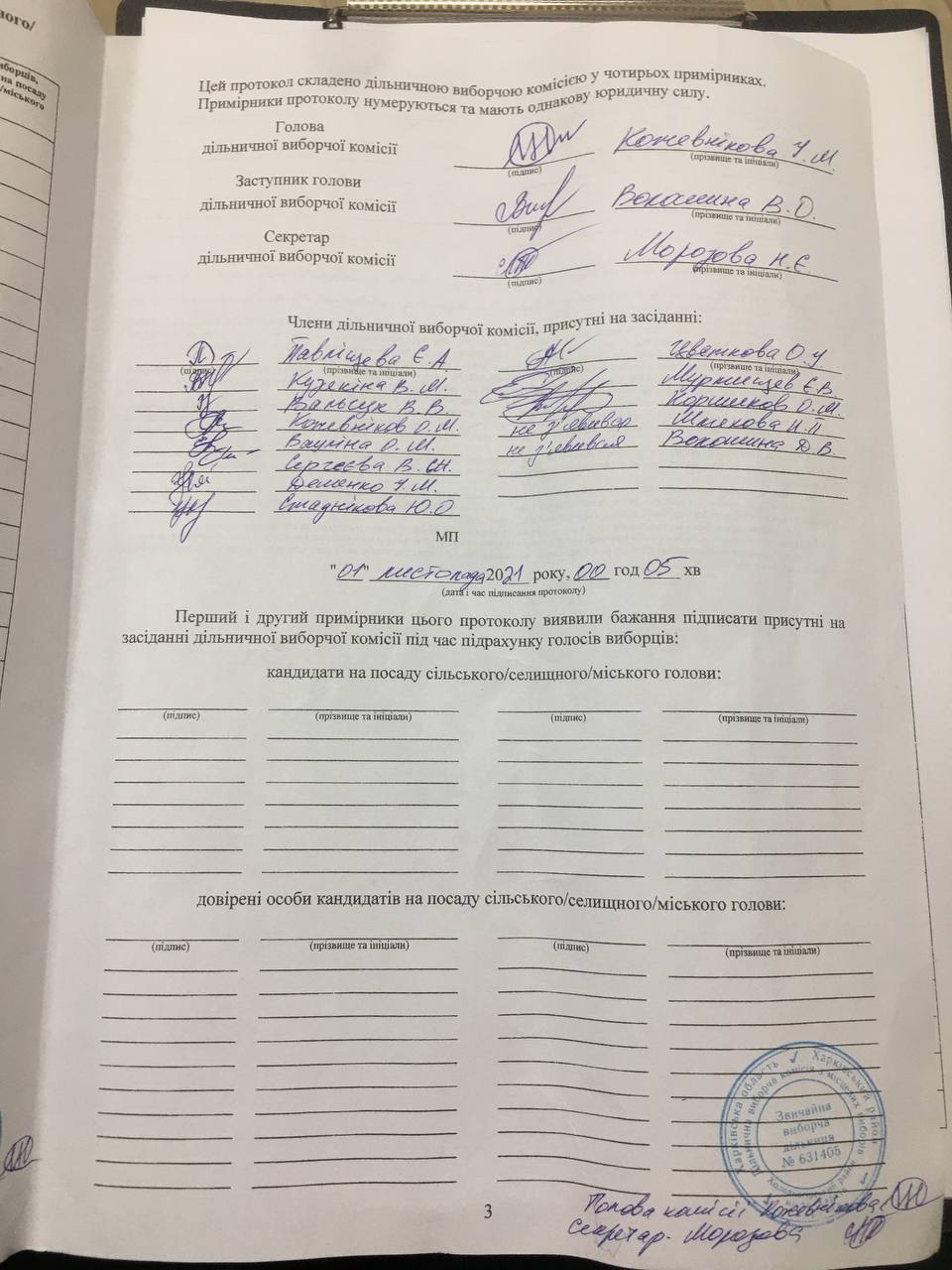 Так само члени ДВК №631405 підписали протокол датою 1 листопада 00:05.