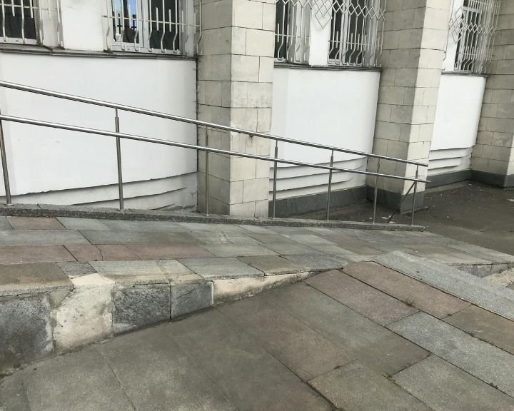 Приміщення Дарницької РДА має пандус і ліфт, але градус нахилу пандусу не надто зручний для людей з інвалідністю