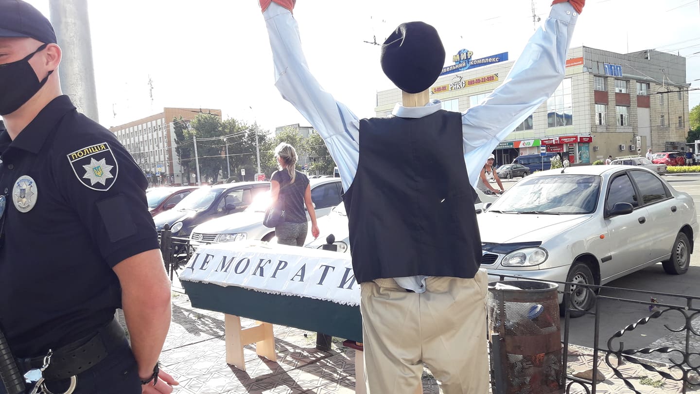 У другій половині дня масова протестна акція  відбулася вже на площі перед Луганською обласною військово-цивільною адміністрацією. Активним  учасниками акції виступали представники «Європейської солідарності» та «Команди Сергія Шахова». Захід супроводжувався театралізований дійством з похованням труни з написом «демократія».