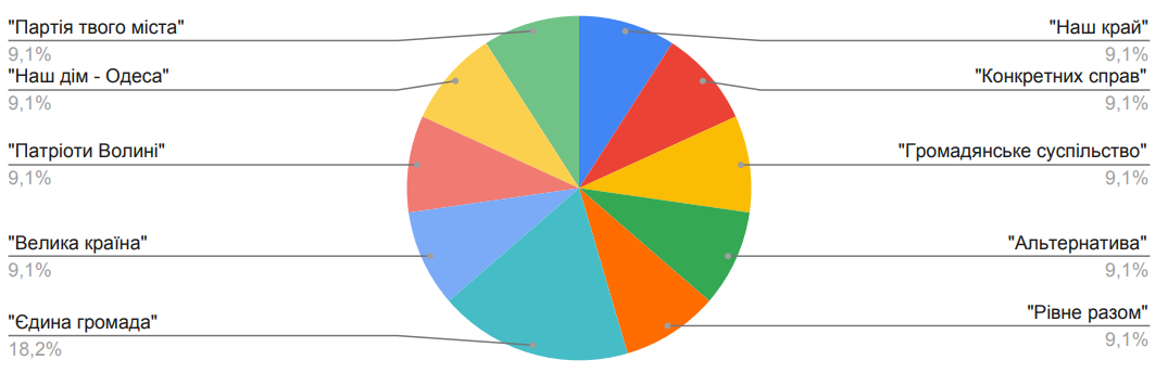 Своїх представників наразі замінили 10 політичних сил. По одній заміні від політичних партій "Наш край", “Партія Конкретних справ”, "Громадянське суспільство", "Альтернатива", "Рівне разом", "Єдина громада", "Велика країна", "Патріоти Волині", "Наш дім - Одеса", "Партія твого міста". Також 2 заміни у складі ТВК зробила місцева організація політичної партії “Єдина громада”.