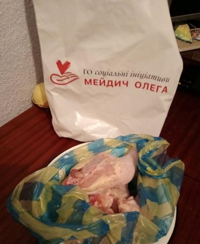 У Вінницькій області мешканці Калинівського району отримують заморожені курячі стегенця. Роздають її від Громадської організації «Соціальні ініціативи Мейдича Олега» у вигляді благодійної допомоги. Про це повідомляють спостерігачі Громадянської мережі ОПОРА.