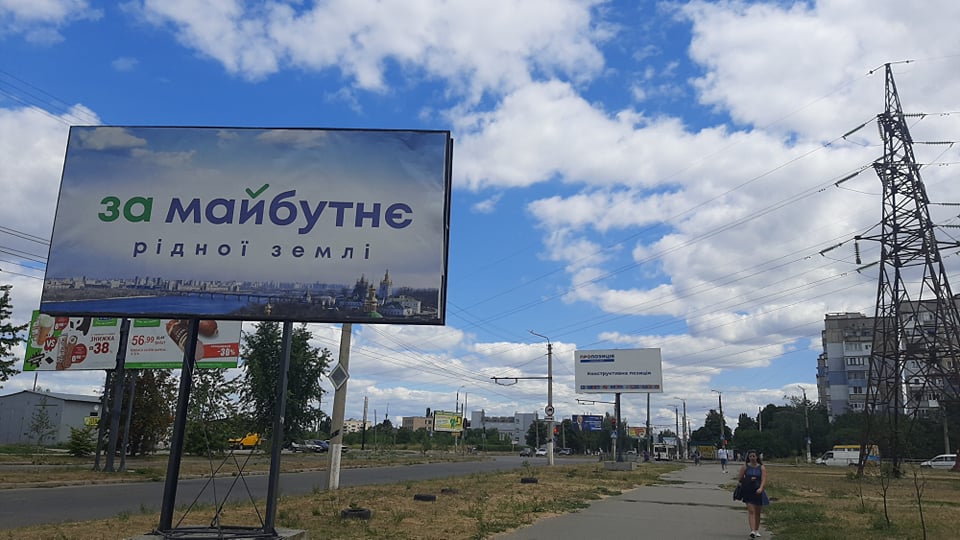 А от партія «За майбутнє» фоном для зовнішньої реклами обрала краєвид Кропивницького з висоти пташиного польоту. Політсила використовує слоган: «За майбутнє рідної землі».
