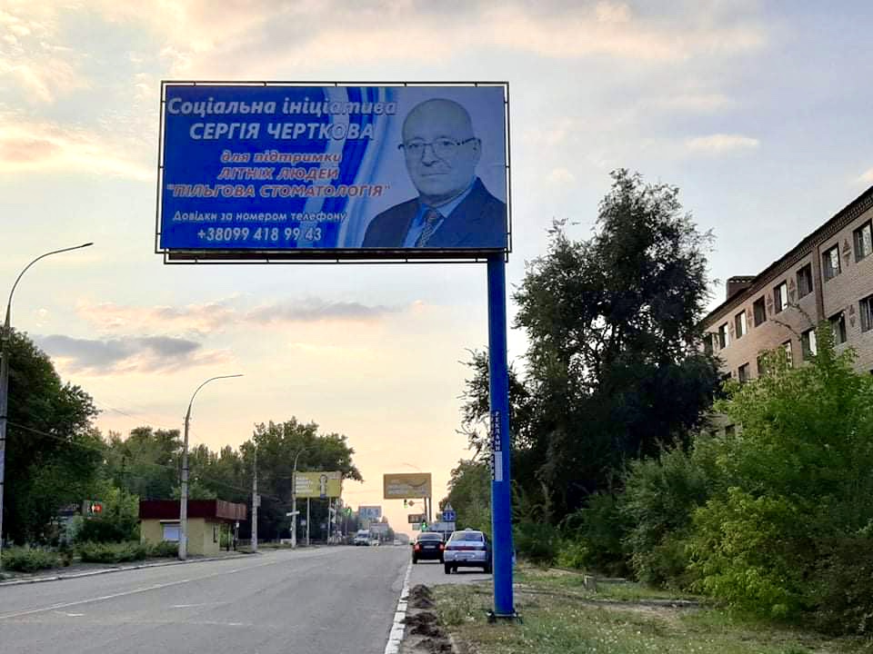 У місті Бахмут Донецькій області Валерій Слесарєв, який є депутатом міської ради від «Опозиційної платформи - За життя» та потенційним кандидатом на посаду міського голови міста, активно розповсюджує рекламу на білбордах.