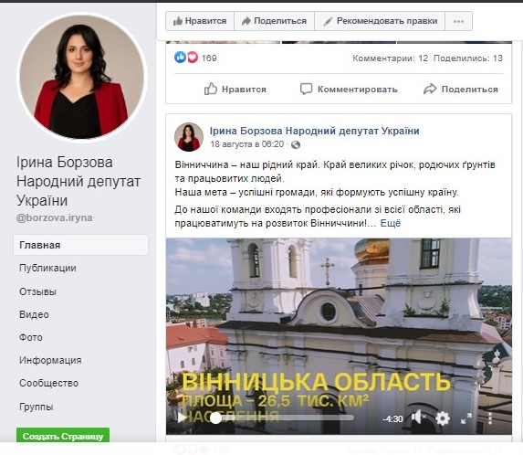 Відео на своїй сторінці у соціальній мережі Facebook розмістила народна депутатка України від політичної партії «Слуга народу» Ірина Борзова.