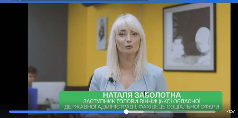 На 02:33 секунді говорить заступниця голови ОДА Наталя Заболотна: «Соціальною роботою та молодіжною політикою займаюсь майже 20 років і знаю, наскільки важливо підтримувати соціальну сферу. Це наше піклування про тих, хто цього потребує. Це діти, молодь, літні люди. За ці два роки 150 дітей-сиріт отримають власне житло. Ми будуємо два будинки сімейного типу. Вперше в області з’являться два малих групових будиночки для дітей-сиріт з інвалідністю. Для цього держава виділила 75 мільйонів гривень. І ще ми маємо піклуватися про наше майбутнє, тому якісна, доступна і сучасна освіта – це наш пріоритет».