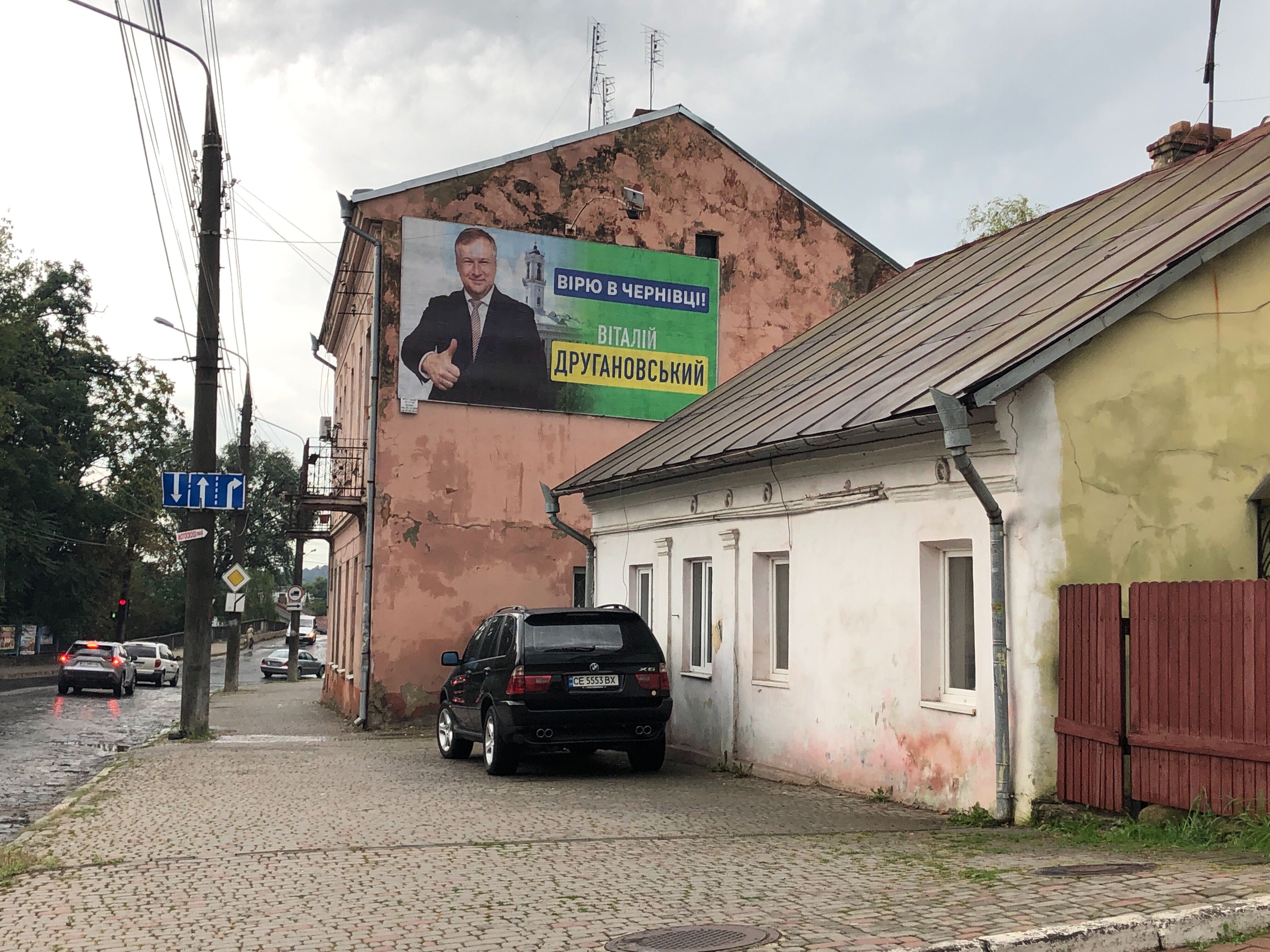 У місті Чернівцях розповсюджена політична реклама потенційного кандидата в очільники міста Віталія Другановського, деякі із підписом «Вірю в Чернівці».