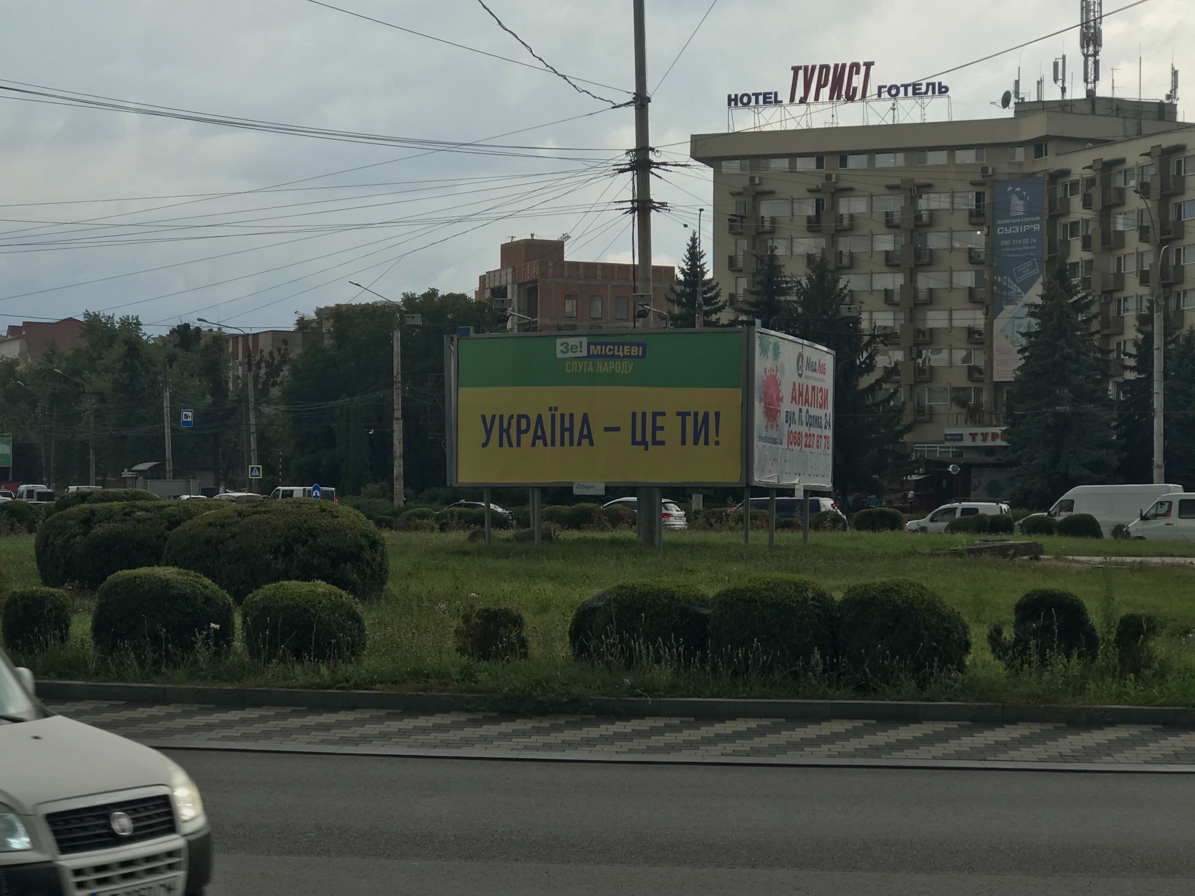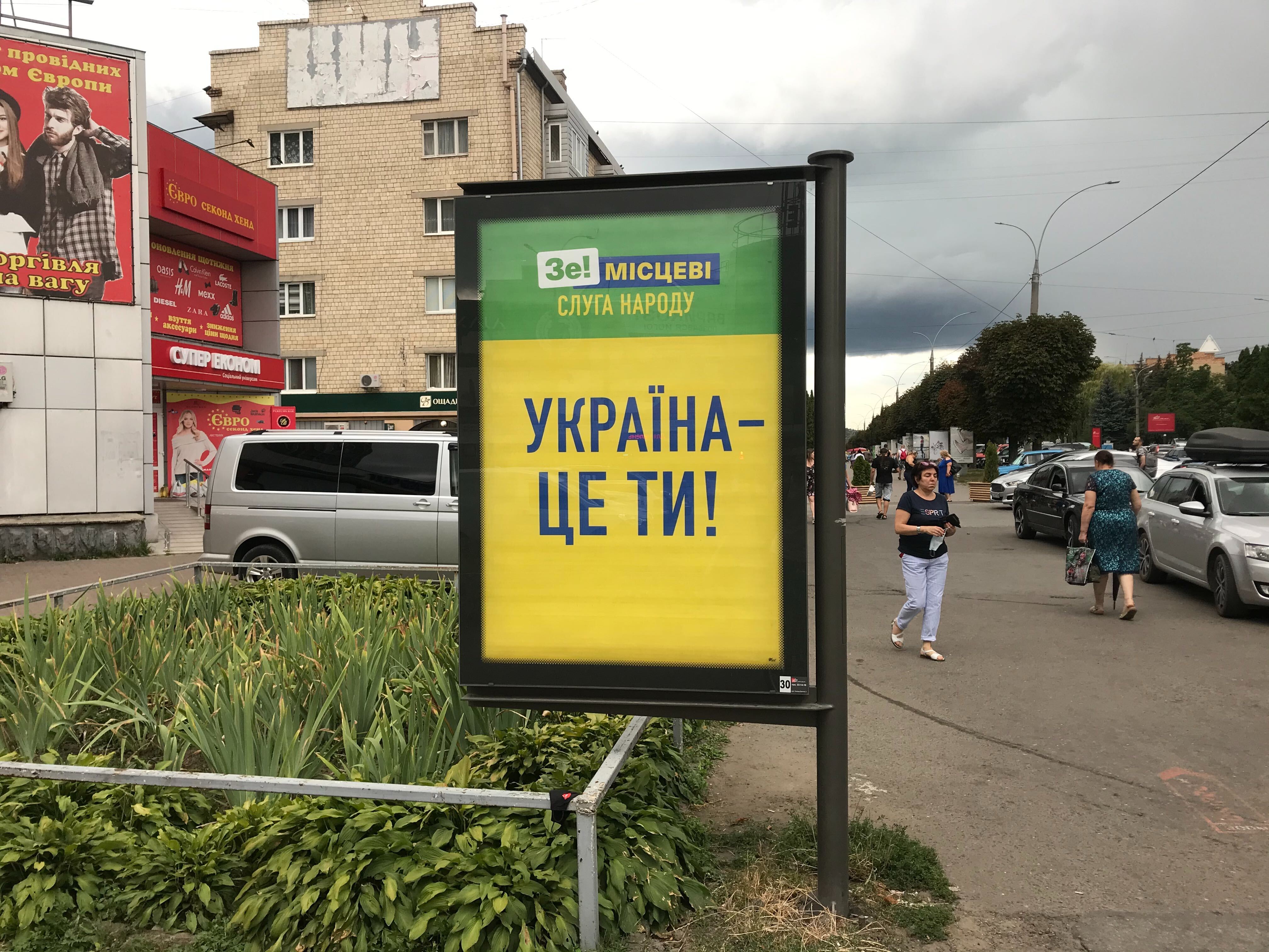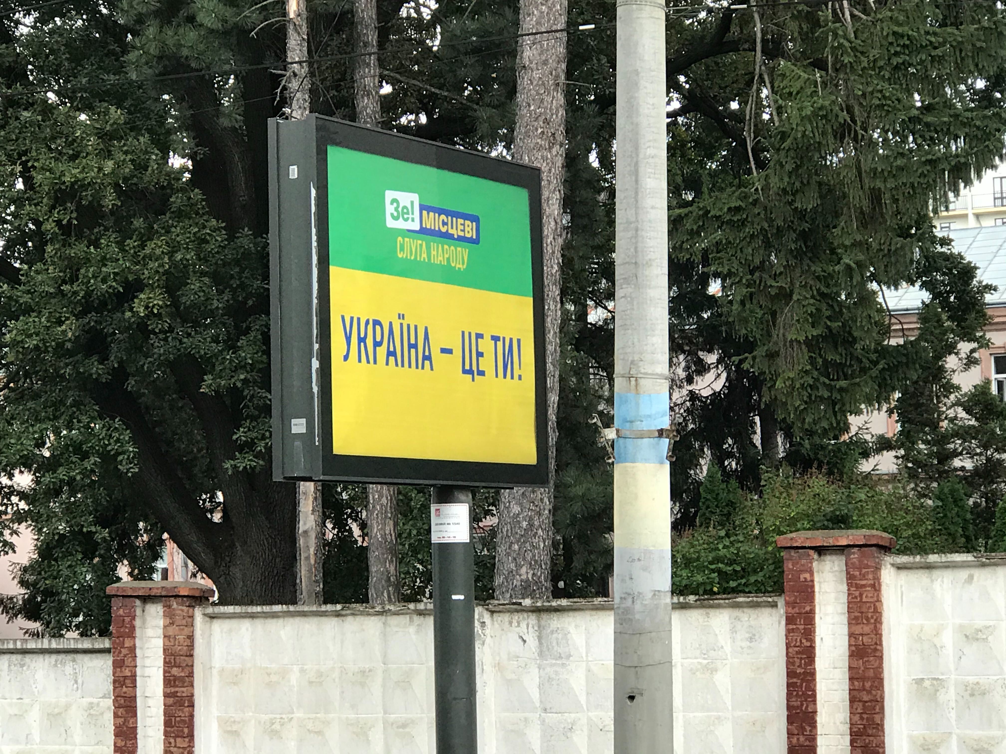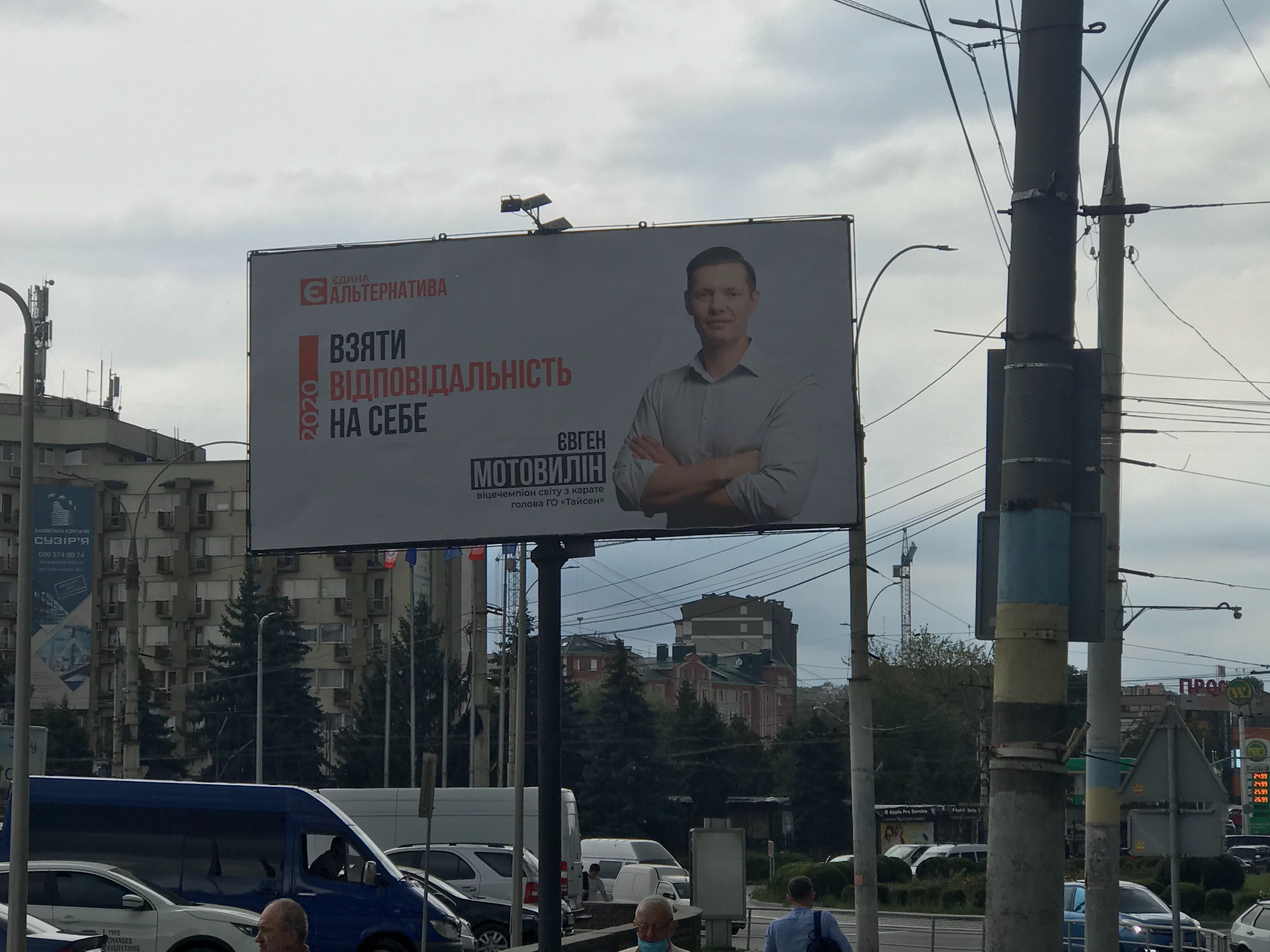 Найбільше білбордів та сітілайтів зафіксовано від політичних сил: «Слуга народу» із написом: «Україна — це ти», «Перемога Пальчевського» із закликом: «Об’єднуйтесь» та місцевого громадянського руху «Єдина Альтернатива», від якого зустрічається як загальна реклама руху, так і окремих осіб.