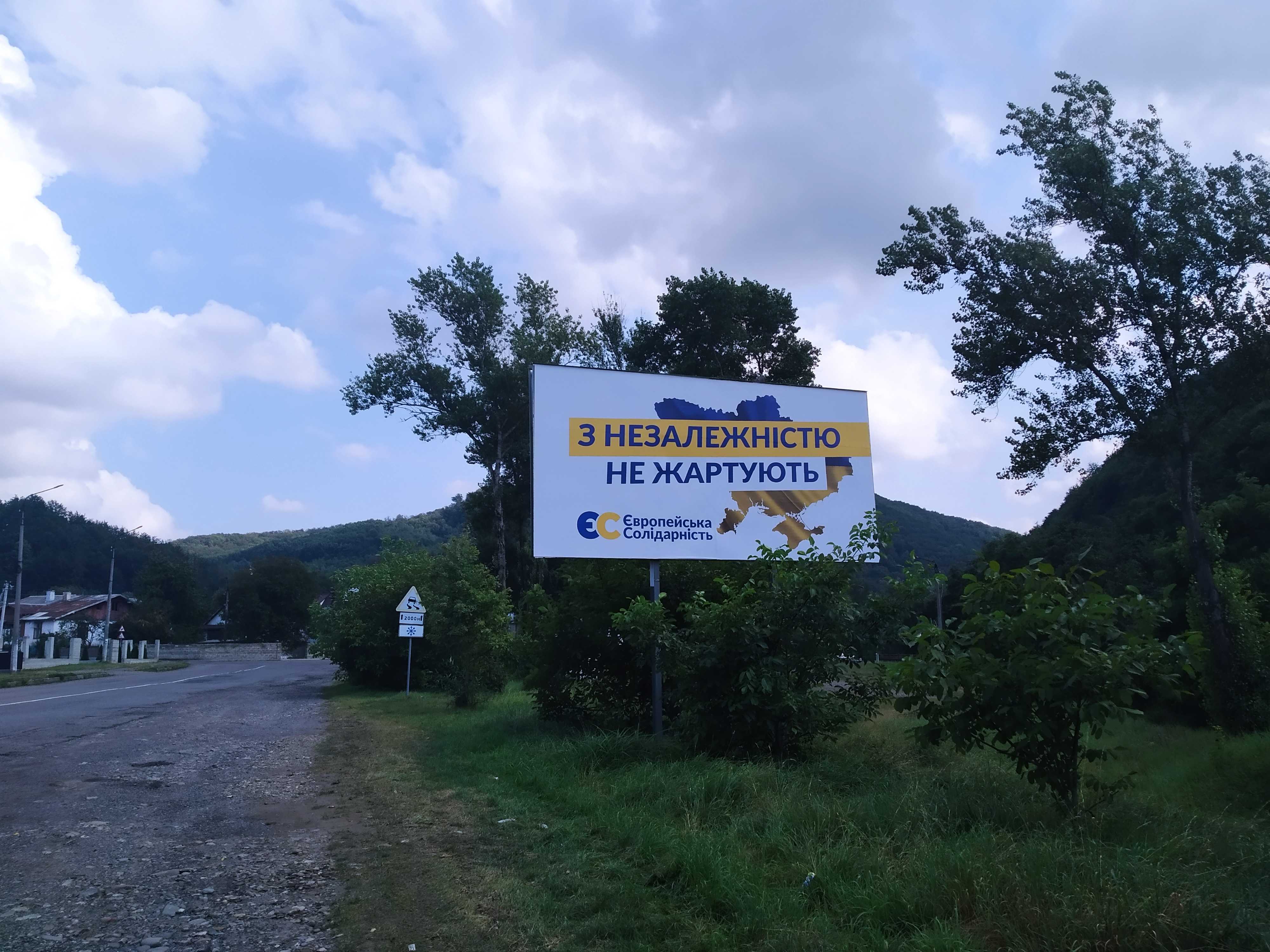 У Вижницькому районі, а саме у місті Вижниця, присутня зовнішня реклама політичної партії «Європейська Солідарність».