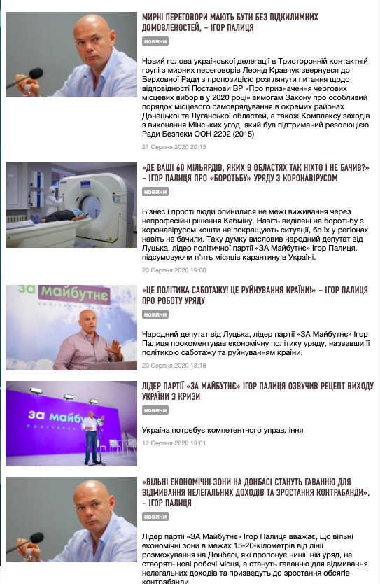 Ще принаймні по одній публікації, де поряд із ім’ям нардепа згадували те, що він очолює партію «За майбутнє», вийшли на сторінках видань «Під прицілом», «БУГ», «ВолиньInfa», а також сюжет на ТРК «Аверс». Стосовно згадок партії окремо, то таких було лише кілька – у контексті підтримки її певними особами.
