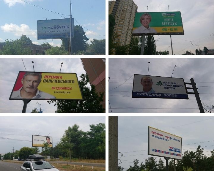 Спостерігачі ОПОРИ відзначили, що найбільш помітна на вулицях Києва рекламна продукція від партії «Слуга народу». Також є білборди і сітілайти з партіями «За майбутнє», «Пропозиція», «Громадянська позиція», «Батьківщина», політиками Андрієм Пальчевським, Олександром Поповим, Ярославом Федоренком, Олексієм Кучеренком, Оленою Овраменко та іншими.