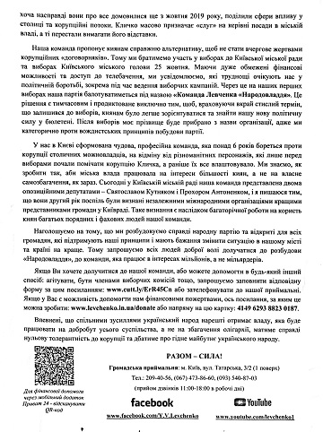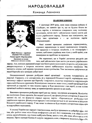 На Дарниці люди отримали у свої поштові скриньки кореспонденцію від потенційного кандидата на пост міського голови Юрія Левченка – листівки без вихідних даних. Тут йдеться про політичну партію «Народовладдя», є критика діючого мера столиці Володимира Кличка та (дослівно) «слуг» тощо. Оголошується намір іти на місцеві вибори. У приймальні Юрія Левченка та партії «Народовладдя» ОПОРІ повідомили, що друкувати поліграфію з вказанням вихідних даних (хто, скільки і за які гроші надрукував) будуть тоді, коли стануть офіційними учасниками виборів.