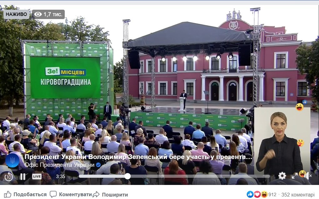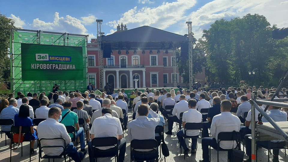 27 серпня Президент України Володимир Зеленський представив голову Кіровоградської ОДА Андрія Назаренка та взяв участь в презентації Стратегії розвитку Кіровоградської області. Під час заходу використовували логотипи партії «Слуга народу»,  банери із написом «Зе! Місцеві вибори». Про це повідомив спостерігач ОПОРИ.