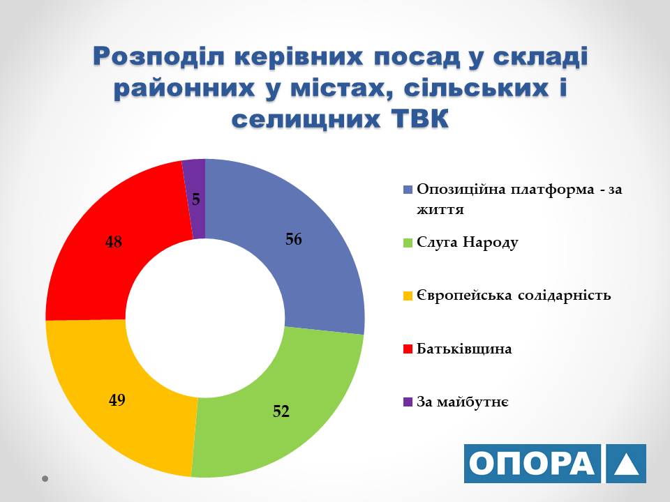 Частина членів комісії не погодилась з розподілом керівних посад у районних у місті ТВК. Згідно з першою постановою, яка не набрала достатньої кількості голосів, більшість керівних посад (8) отримували кандидати від «Слуги народу». Член комісії Андрій Гусак (Партія Єдності) звинуватив голову комісії Олександра Саленка («Слуга народу») в спробах монополізації керівного складу ТВК на користь партій «Слуга народу» та «За майбутнє». Тож більшість членів комісії проголосували за альтернативний розподіл. Таким чином найбільше керівних посад отримали представники партій:«Європейська Солідарність» (4), ОПЗЖ (3), «Слуга народу» (2), «Голос» (2). По одному представнику мають наступні партії: «Партія Єдність», «Альтернатива», «Влада народу», «Наша земля», ВО «Батьківщина», «Час змін», Блок Дмитра Голубова «Велика Країна», «Відродження і розвиток», «Пропозиція», «Партія захисту прав людини», «Національна демократична партія України», «Сонце», «Нова демократія».