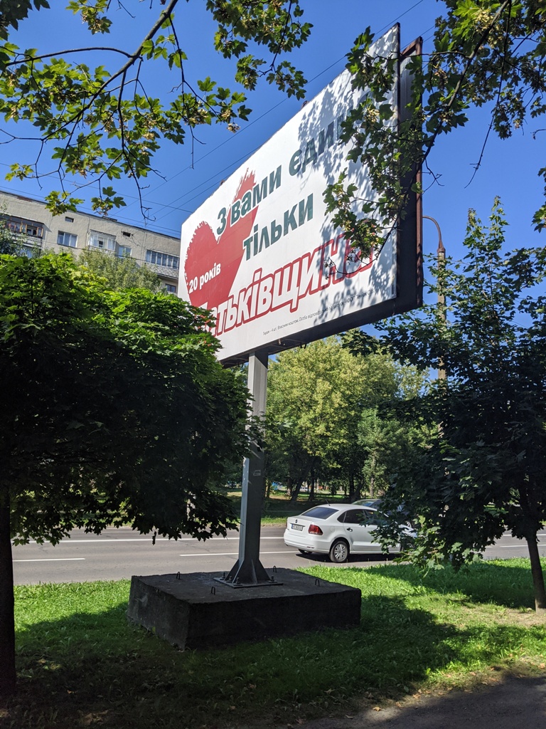 У Коломиї розміщено тематичні сітілайти від Батьківщини»: «Твоя Коломия 779 років. Місто мистецтва». А у Калуші є білборди з надписами : «З Вами Єдина тільки Батьківщина. 20 років».