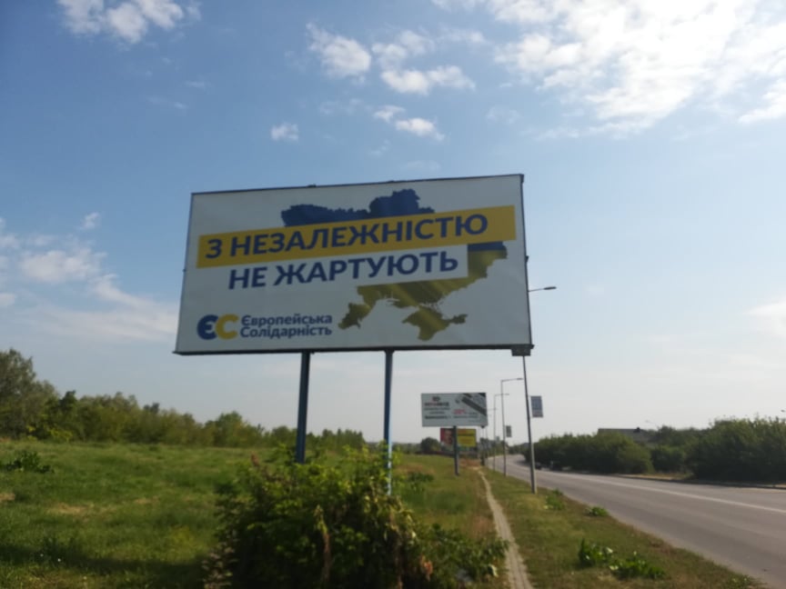 В Івано-Франківську, Коломиї, Косові та Надвірній ОПОРА зафіксувала білборди та сітілайти політичної партії «Європейська Солідарність» (ЄС) із написом «З Незалежністю не жартують».