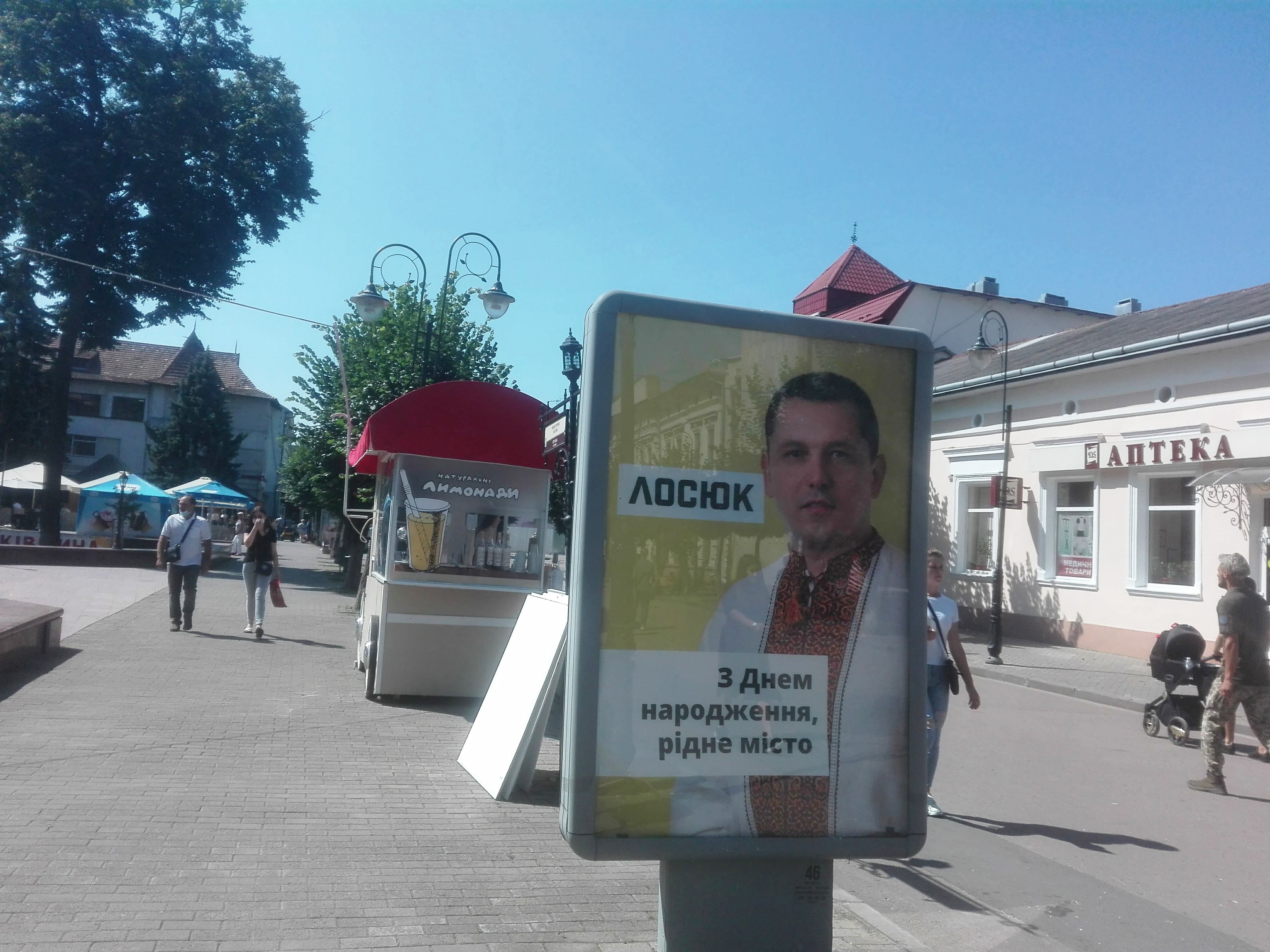У Коломиї розміщена зовнішня реклама депутата Коломийської міської ради Сергія Лосюка: «З днем народження рідне місто» та громадського діяча Павла Григорука – «Нові рішення. Новий підхід. Нова ера» та «Майбутнє тут і тепер. Просто зараз». Також в Коломиї є білборди депутата обласної ради Богдана Станіславського «Творимо Коломию Великою» та «Впевнено до великої мети».