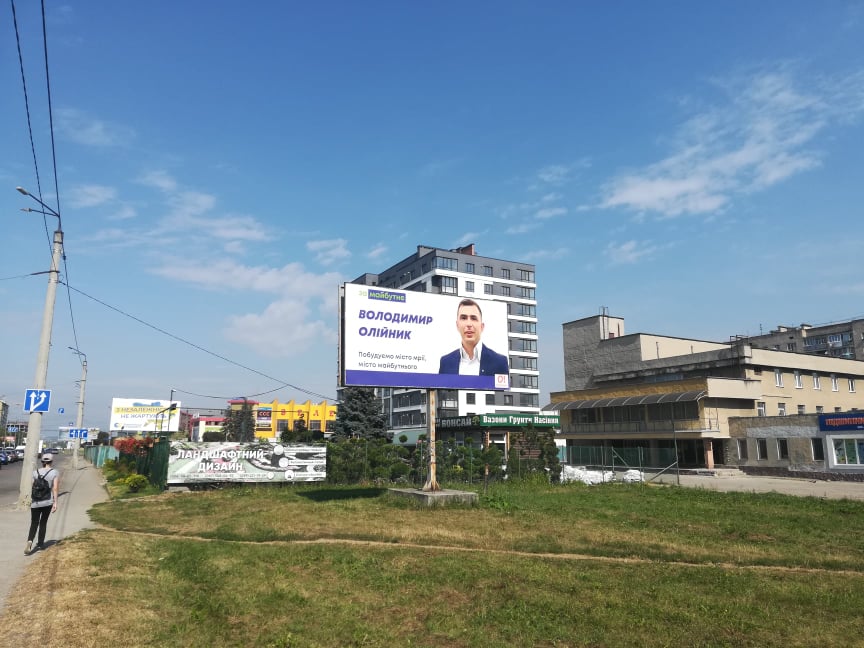 Також є білборди депутатів Івано-Франківської міської ради Віталія Мерінова та Володимира Олійника, представників партії «За майбутнє» – «Побудуємо. місто мрії. Місто майбутнього».